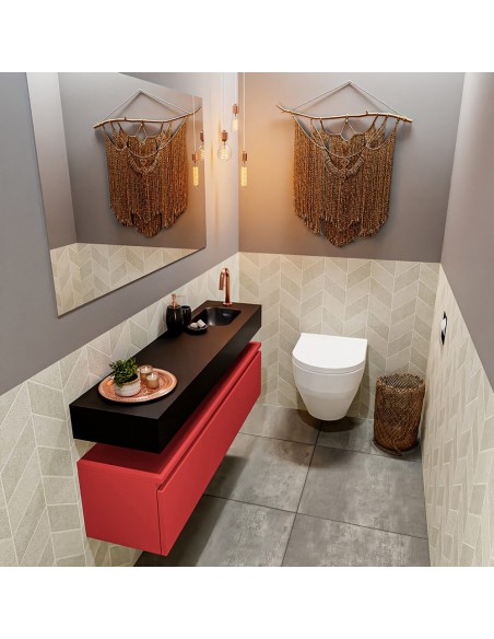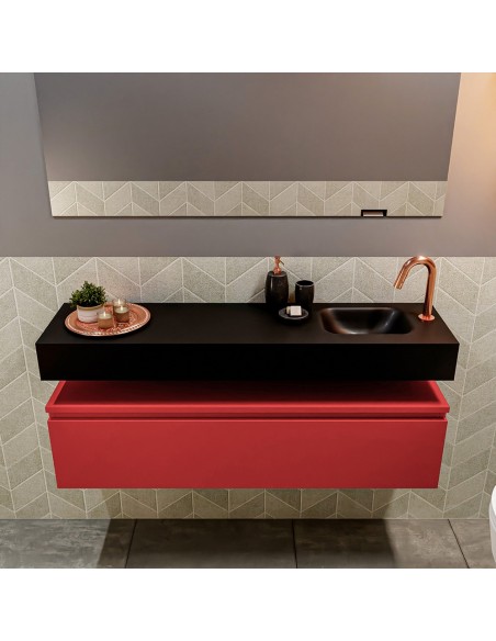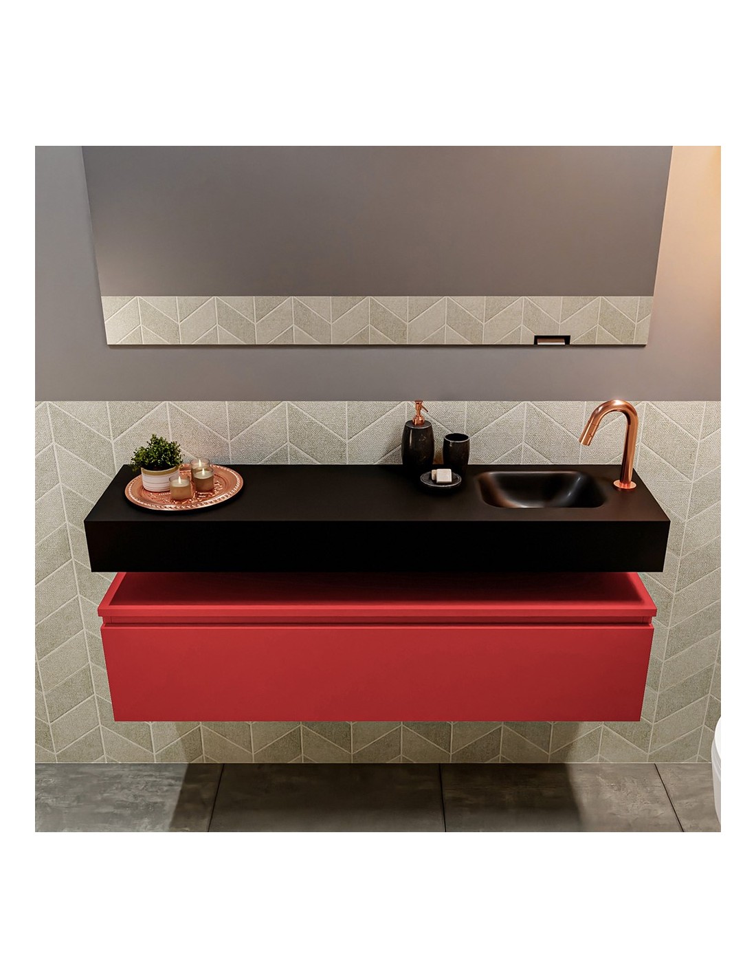 ANDOR Komplet badmiljø højrevendt håndvask B120 cm MDF - Rød/Sort