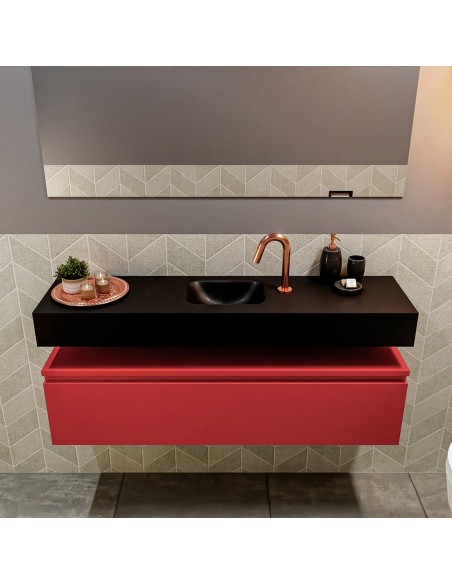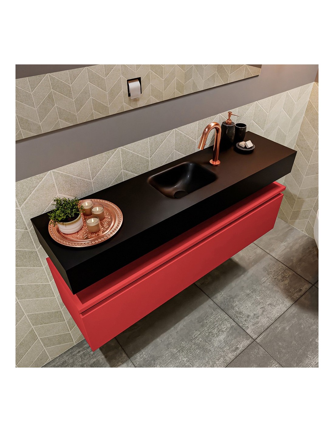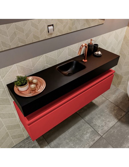 ANDOR Komplet badmiljø centreret håndvask B120 cm MDF - Rød/Sort