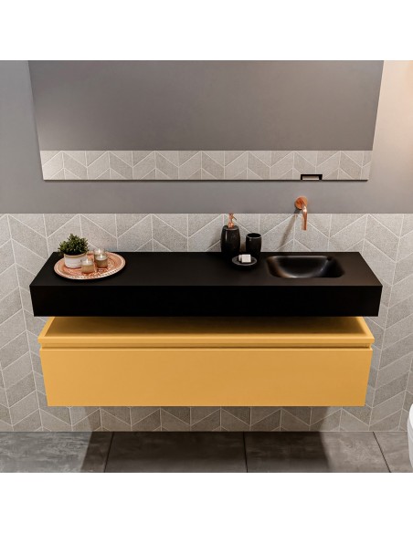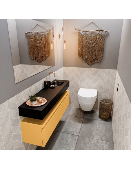 ANDOR Komplet badmiljø højrevendt håndvask B120 cm MDF - Okker/Sort