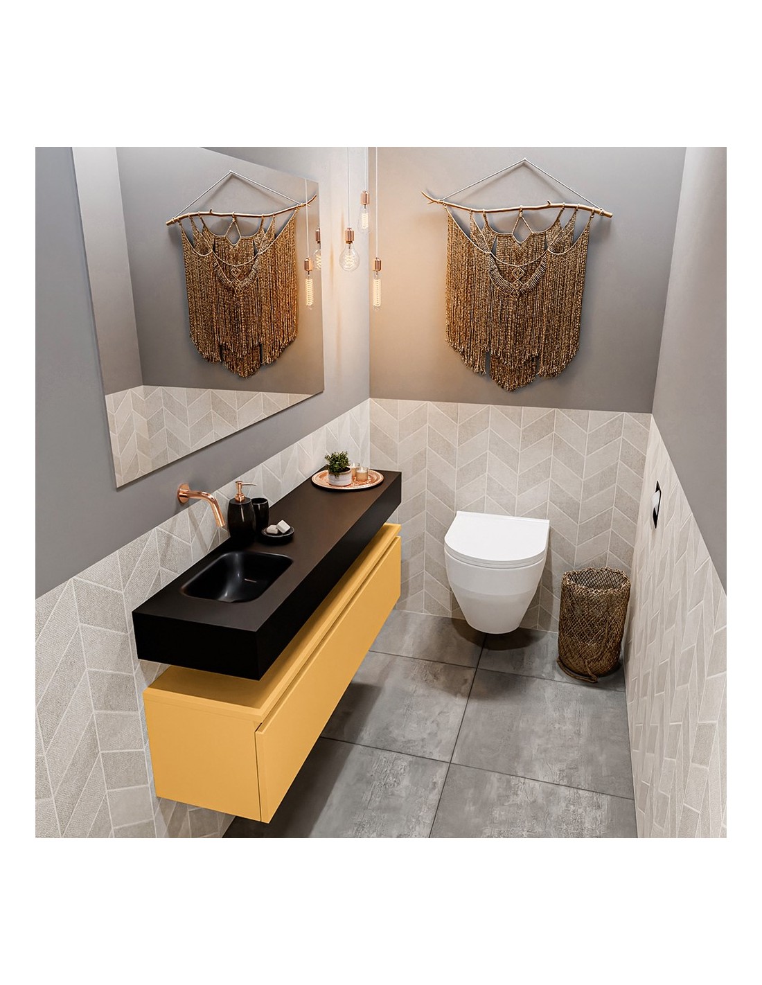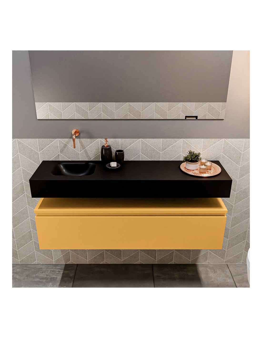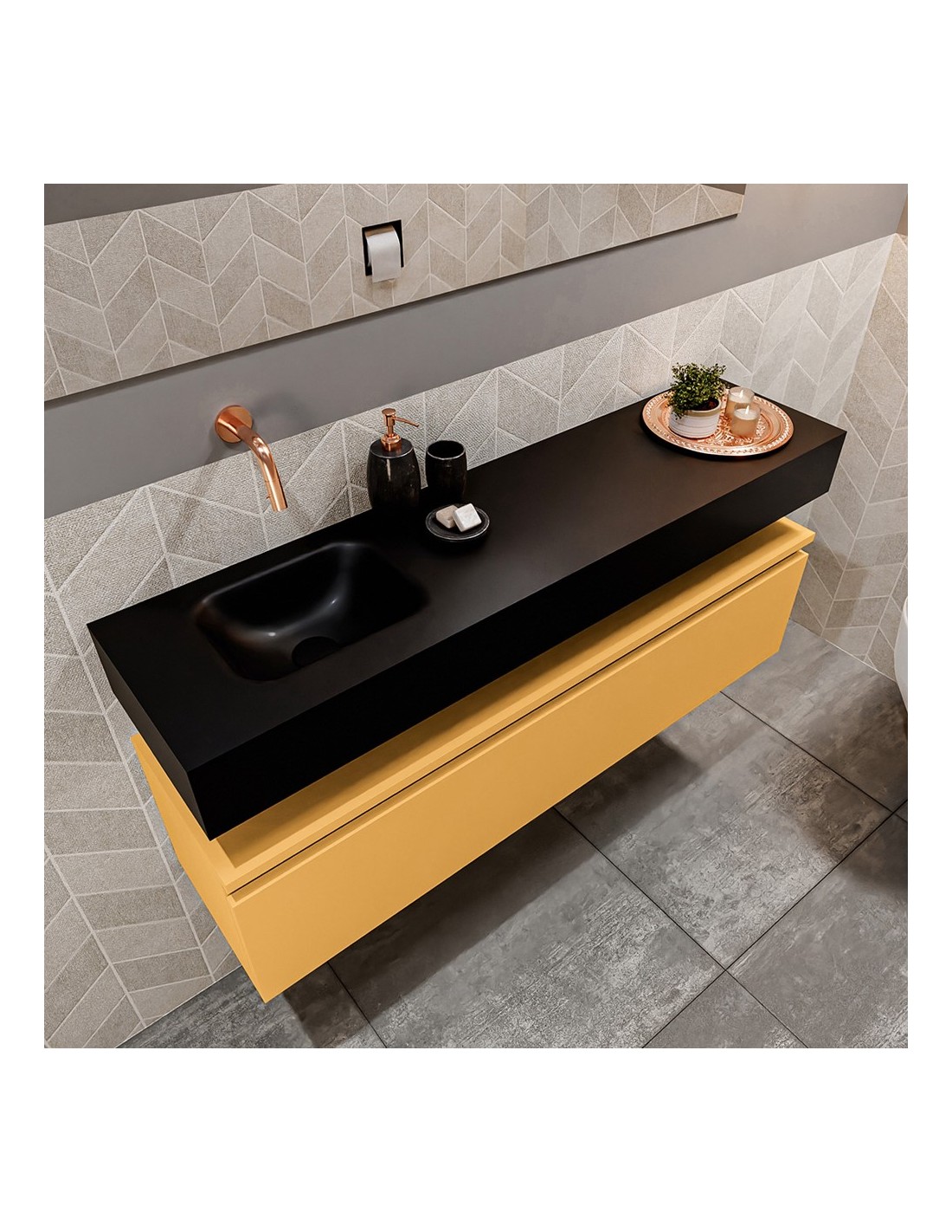 ANDOR Komplet badmiljø venstrevendt håndvask B120 cm MDF - Okker/Sort