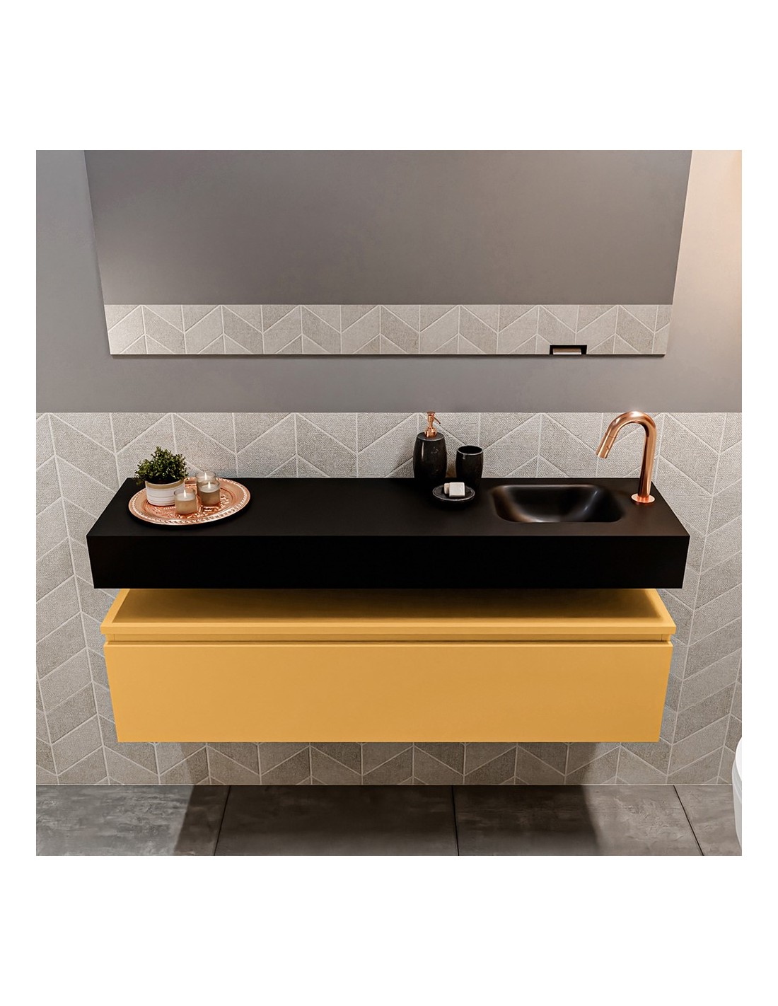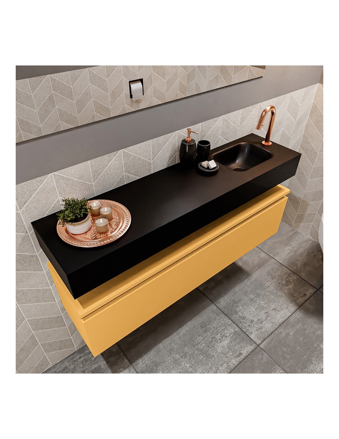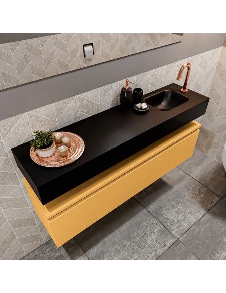 ANDOR Komplet badmiljø højrevendt håndvask B120 cm MDF - Okker/Sort