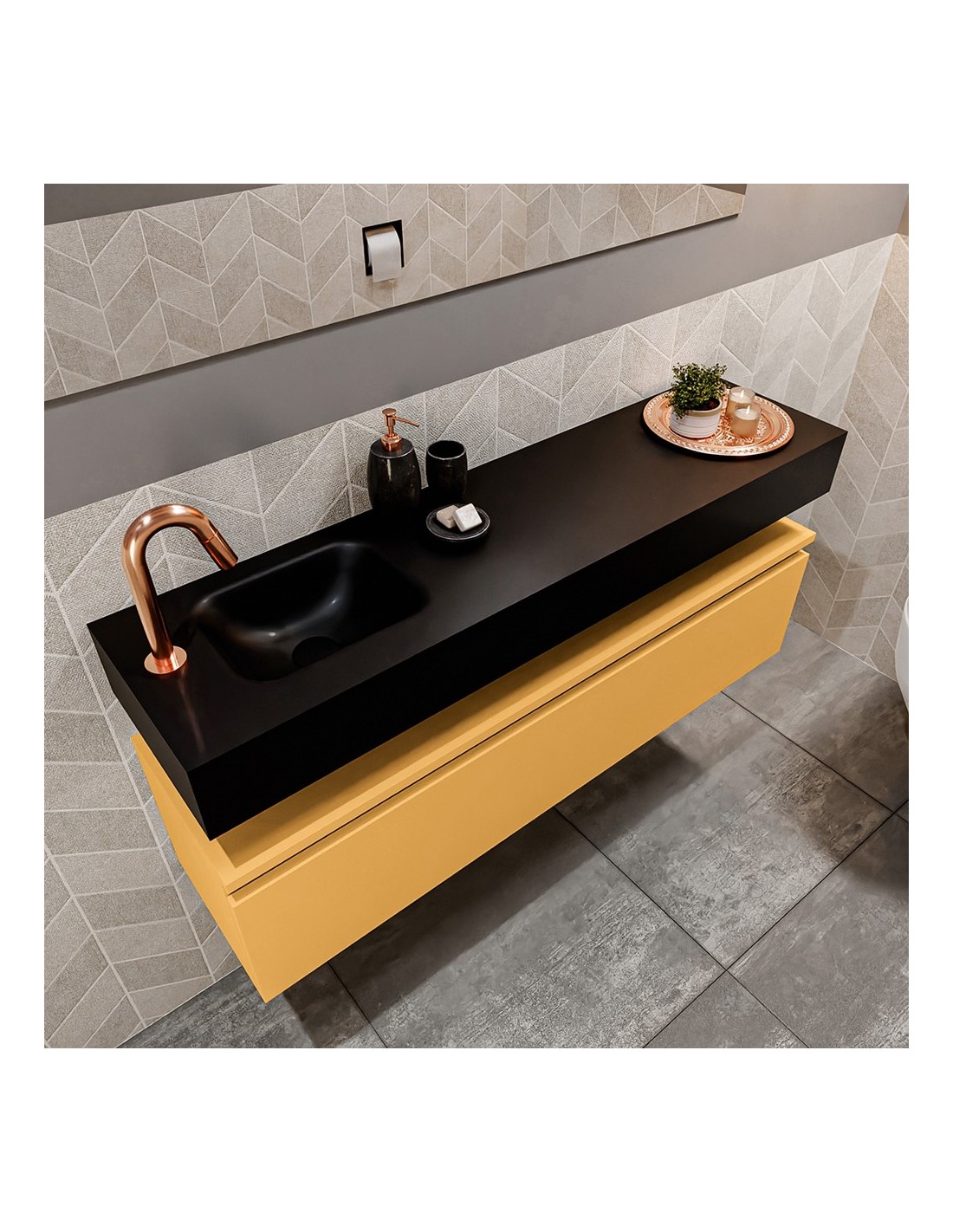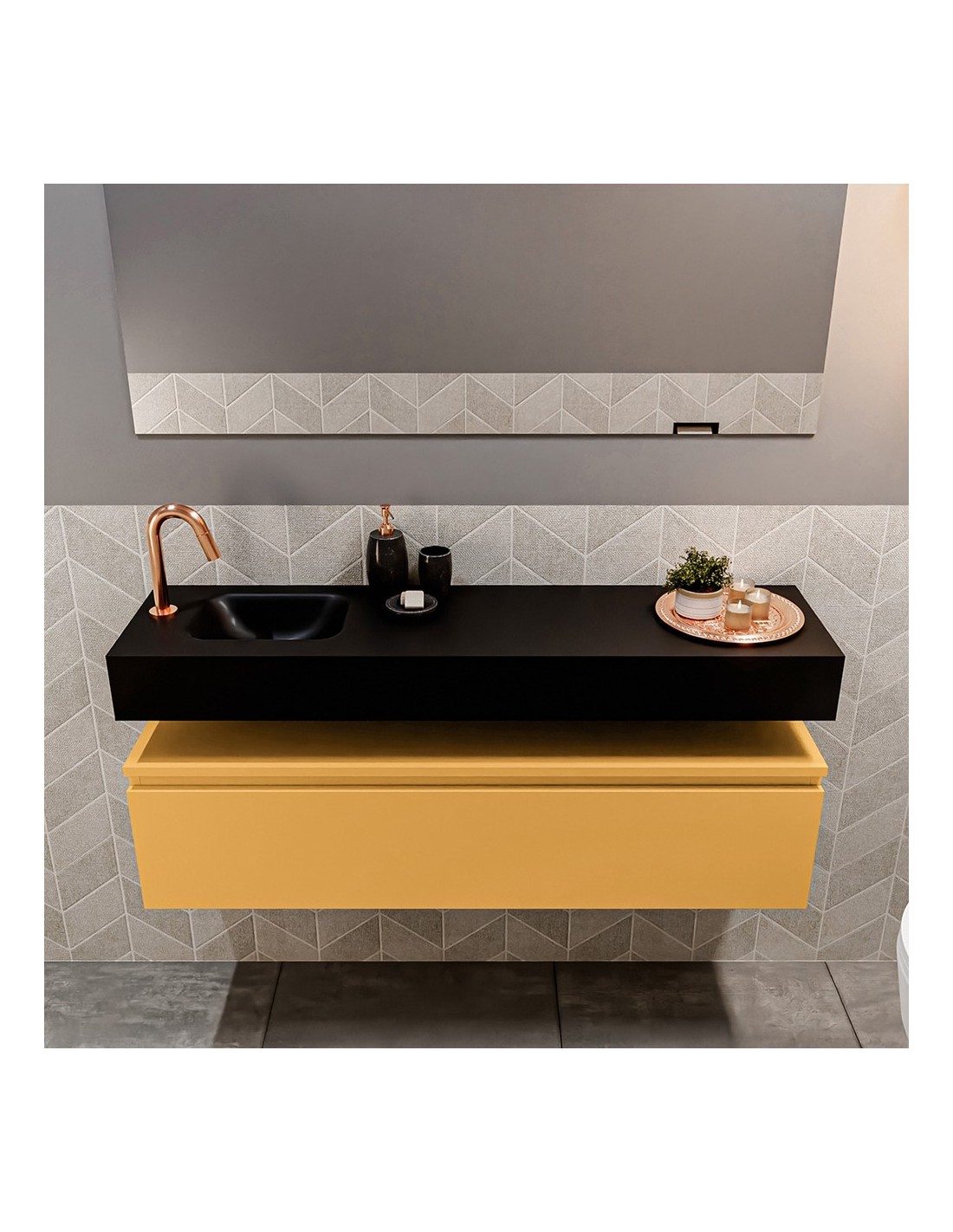 ANDOR Komplet badmiljø venstrevendt håndvask B120 cm MDF - Okker/Sort