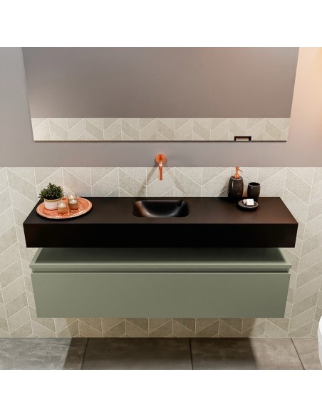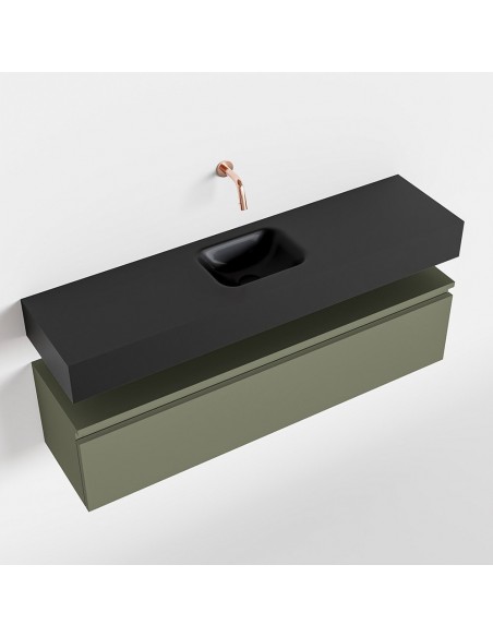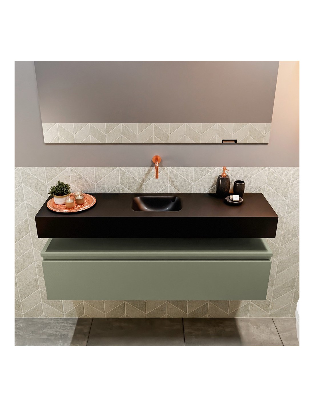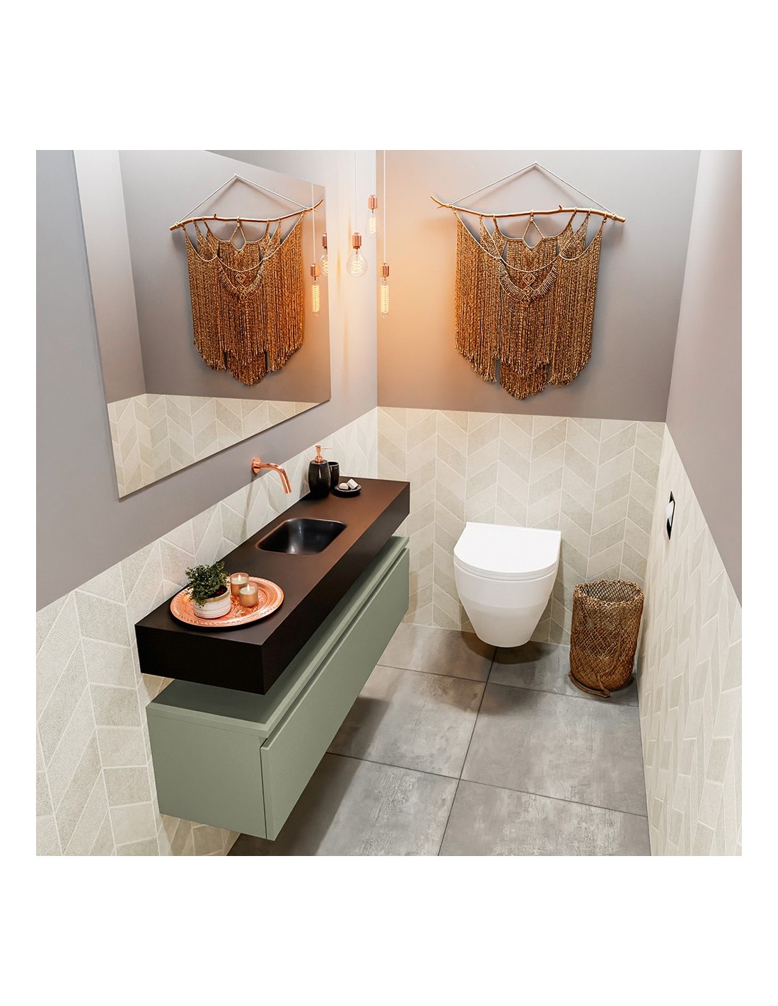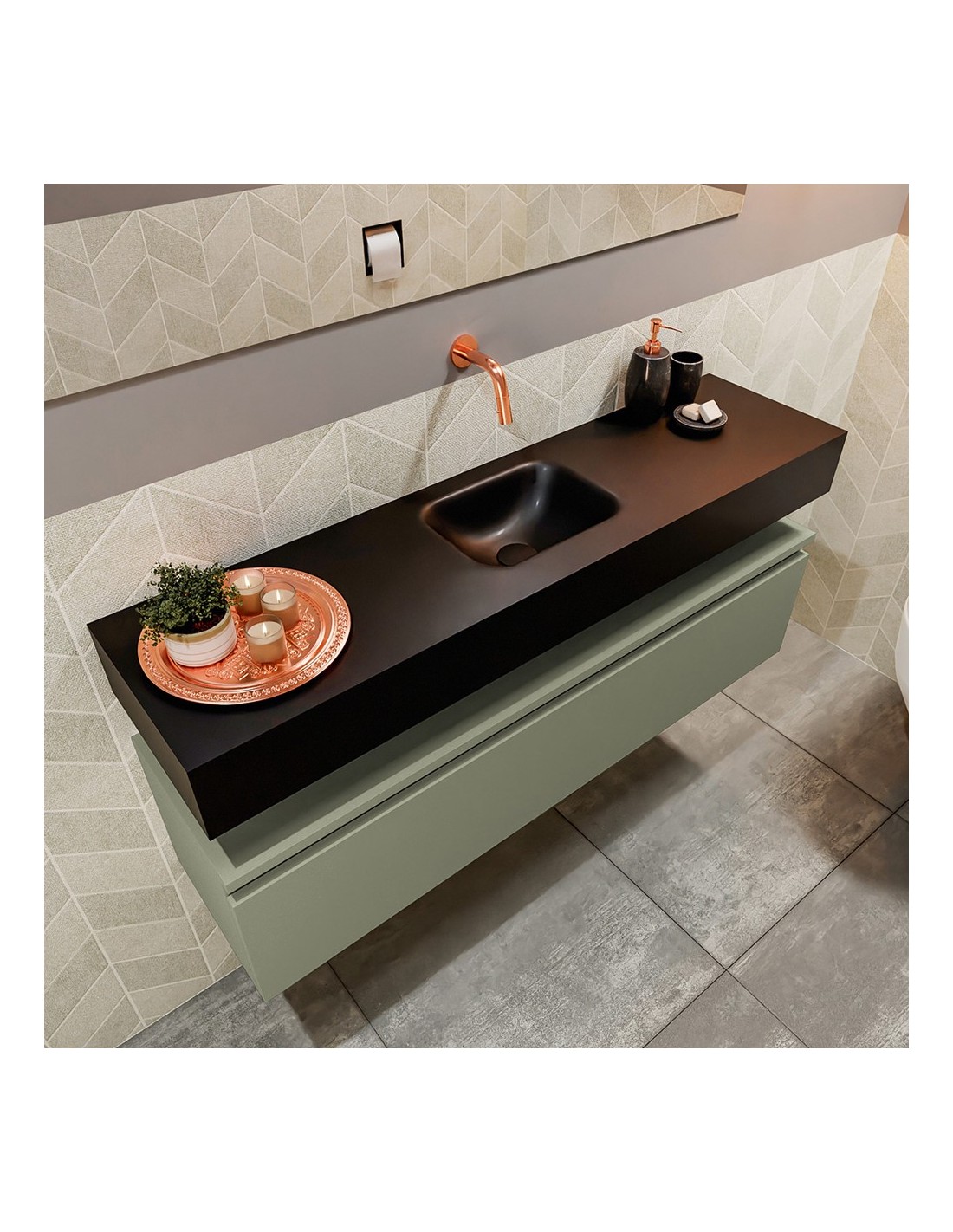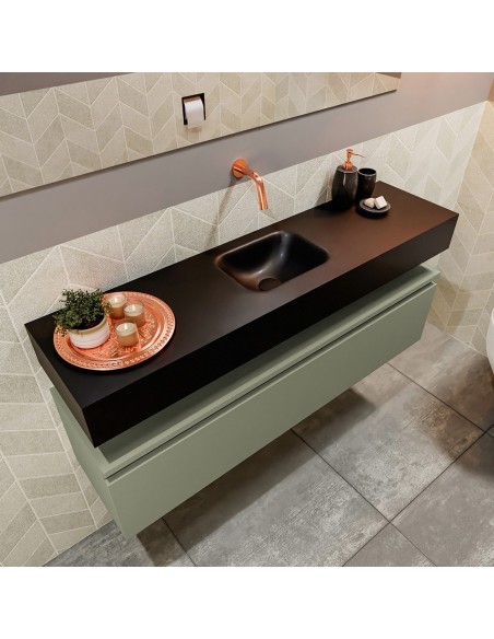 ANDOR Komplet badmiljø centreret håndvask B120 cm MDF - Armygrøn/Sort