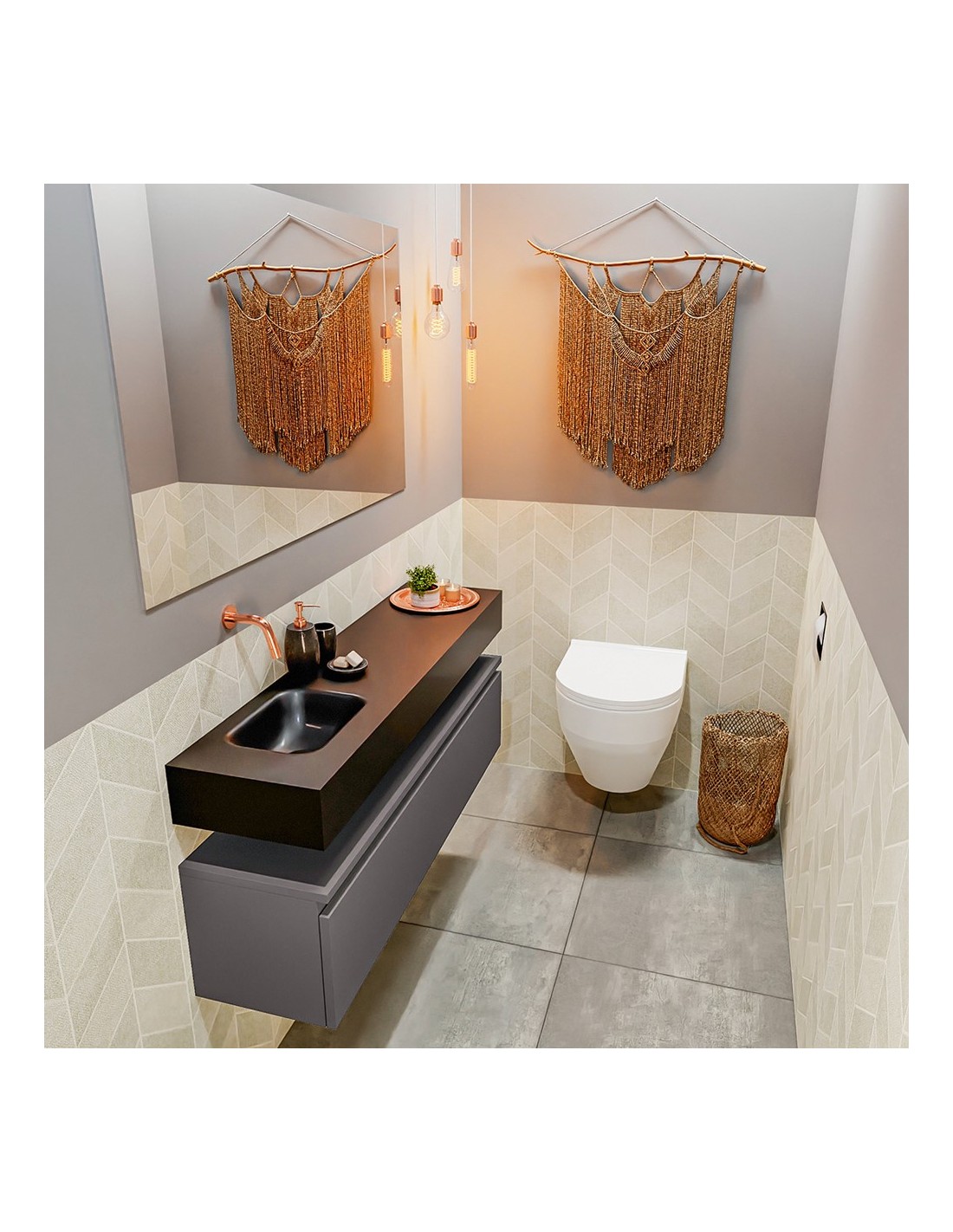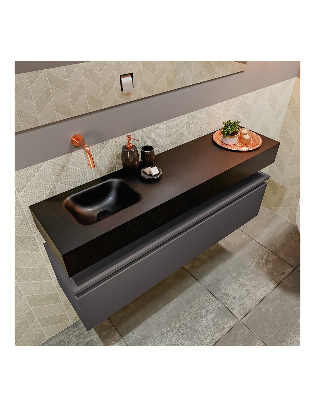 ANDOR Komplet badmiljø venstrevendt håndvask B120 cm MDF - Mørkegrå/Sort