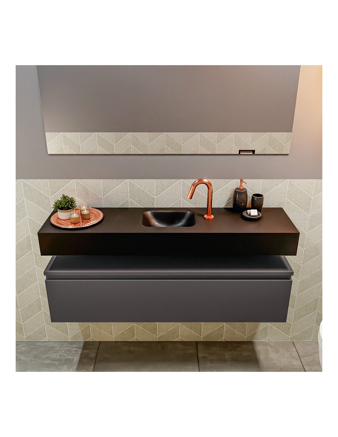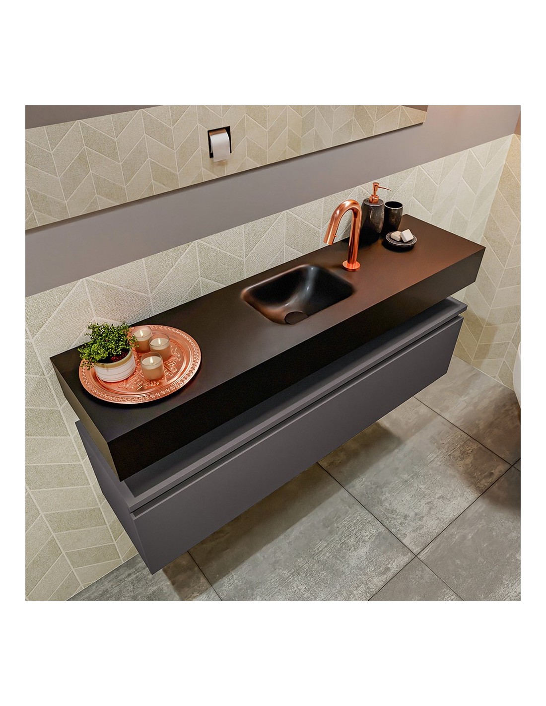 ANDOR Komplet badmiljø centreret håndvask B120 cm MDF - Mørkegrå/Sort