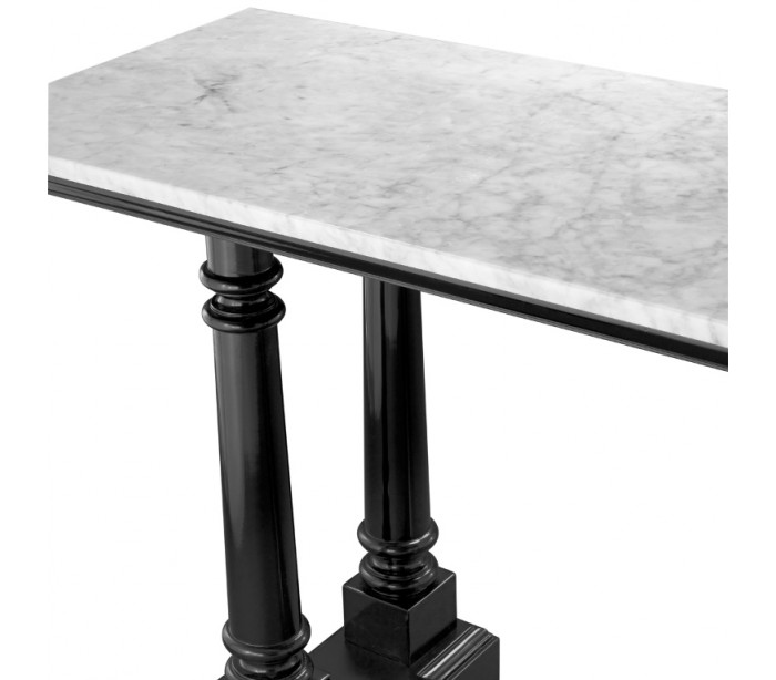 Eichholtz Walford konsolbord i et smukt udført design af sortvokset mahognitræ og med bordplade i hvid marmor. Konsolbordet måler 81 cm i højden og 160 x 50 cm i bredde og dybde.