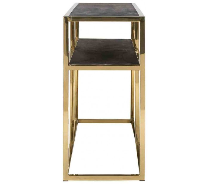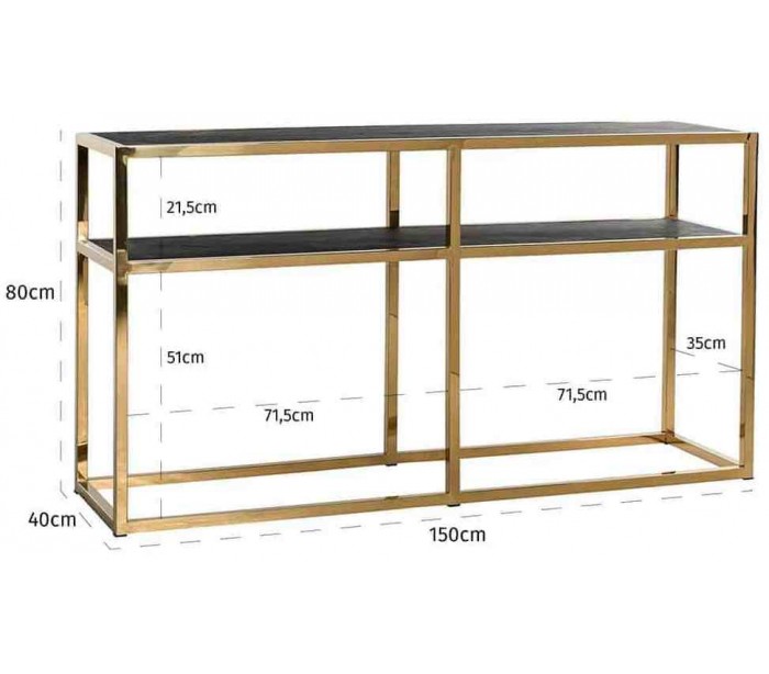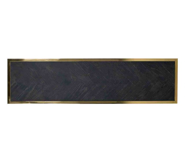 Konsolbord i et design fra hollandske Richmond Interiors. Konsolbordet er fremstillet i sortlakeret egetræ og guldfarvet stål og måler 150 x 40 cm i bredde og dybde og 80 cm i højden.