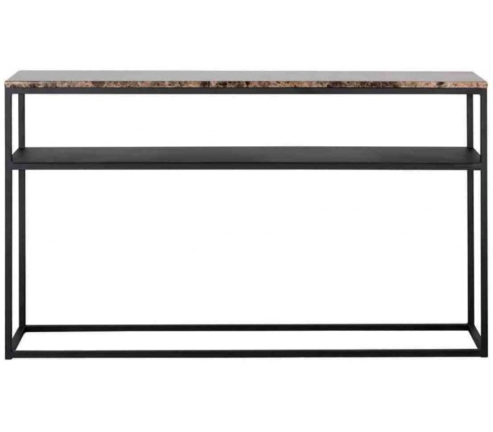 Konsolbord i et design fra hollandske Richmond Interiors. Konsolbordet er fremstillet i brun marmor og sortlakeret metal og måler 140 x 30 cm i bredde og dybde og 80 cm i højden.