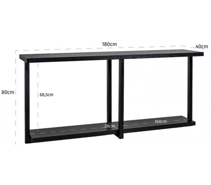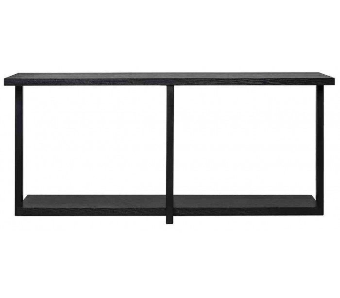 Konsolbord i et design fra hollandske Richmond Interiors. Konsolbordet er fremstillet i sort egetræsfinér og jern og måler 180 x 40 cm i bredde og dybde og 80 cm i højden.