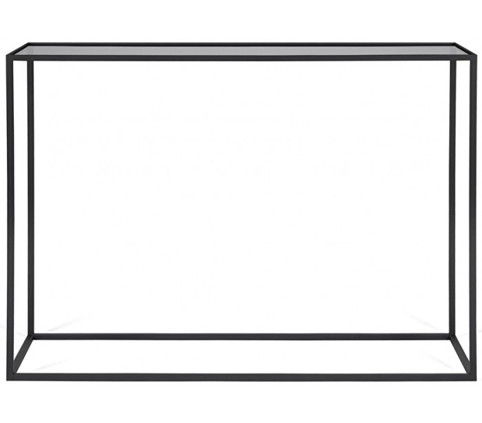 Konsolbord i et design fremstillet med bordplade i glas og stel i lakeret metal. Konsolbordet måler 110 x 35 cm i bredde og dybde og 80 cm i højden.