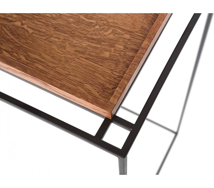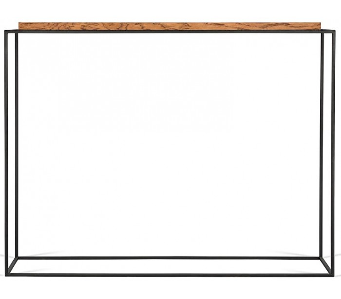 Konsolbord i et design fremstillet med bordplade i egetræ og stel i lakeret metal. Konsolbordet måler 100 x 37 cm i bredde og dybde og 78 cm i højden.