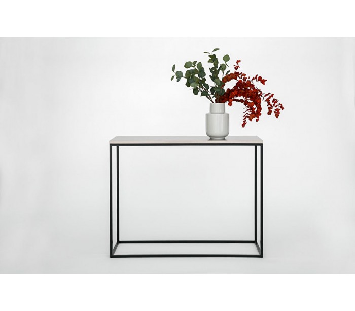 Konsolbord i et design fremstillet med bordplade i stålbelagt mdf og stel i lakeret metal. Konsolbordet måler 100 x 35 cm i bredde og dybde og 76 cm i højden.