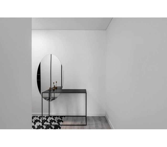 Konsolbord i et design fremstillet i lakeret metal. Konsolbordet måler 110 x 35 cm i bredde og dybde og 80 cm i højden.
