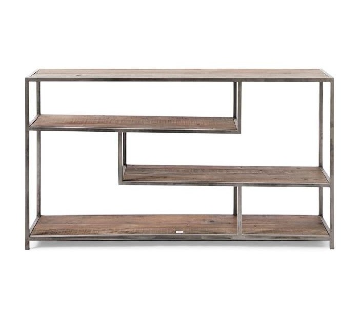 Konsolbord i genanvendt egetræ og metal 150 x 35 cm - Antik sølv/Natur