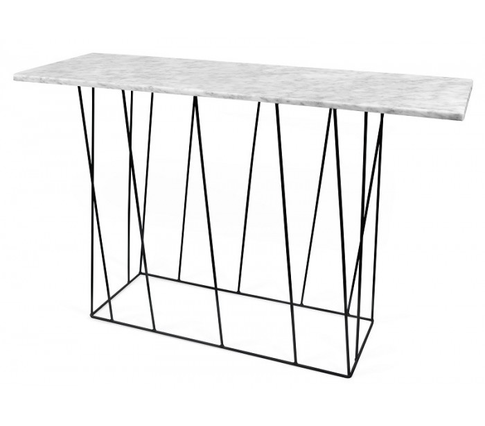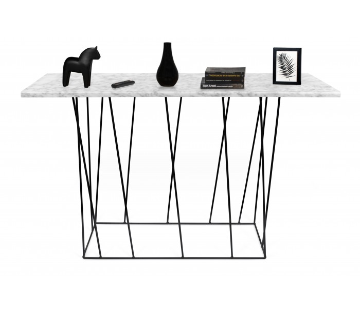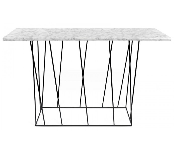 TemaHome Helix konsolbord udført i et design af sortlakeret metal og hvid marmor. Sofabordet måler 76 cm i højden og 120 x 40 cm i bredde og dybde.