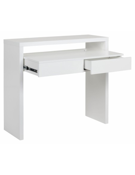 Konsolbord fra Woodman, udført i et moderne design. Konsolbordet er fremstillet i MDF og kommer med udtræksplade samt 2 skuffer for bedre anvendelse.