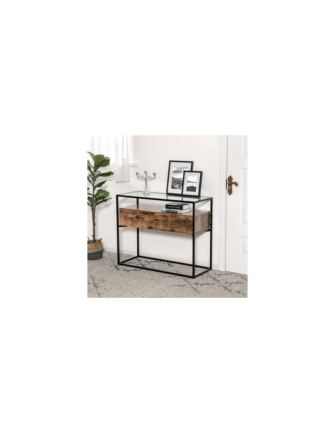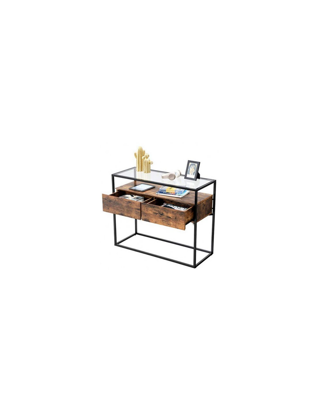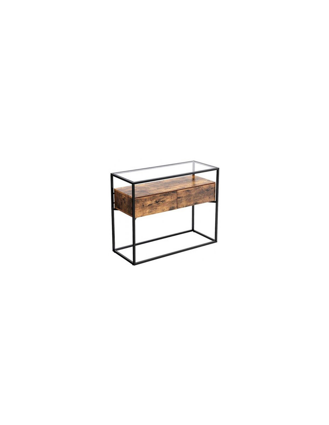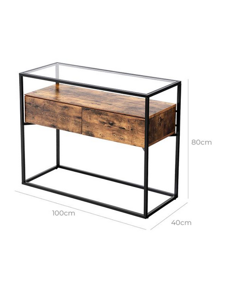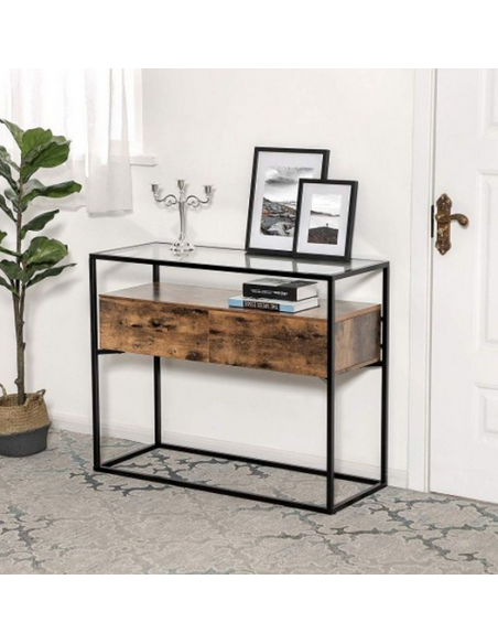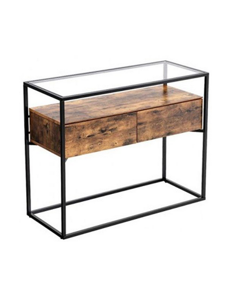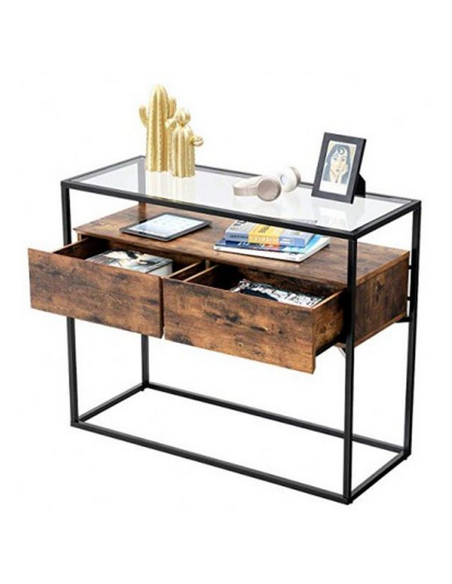 Konsolbord i metal, glas og møbelplade 100 x 40 cm - Sort/Brun