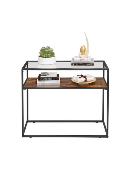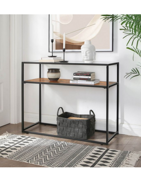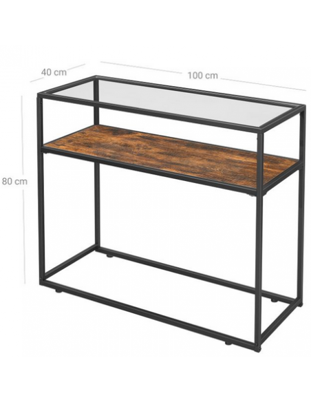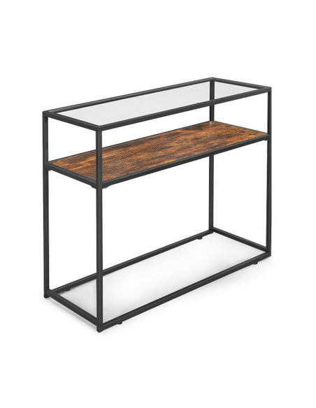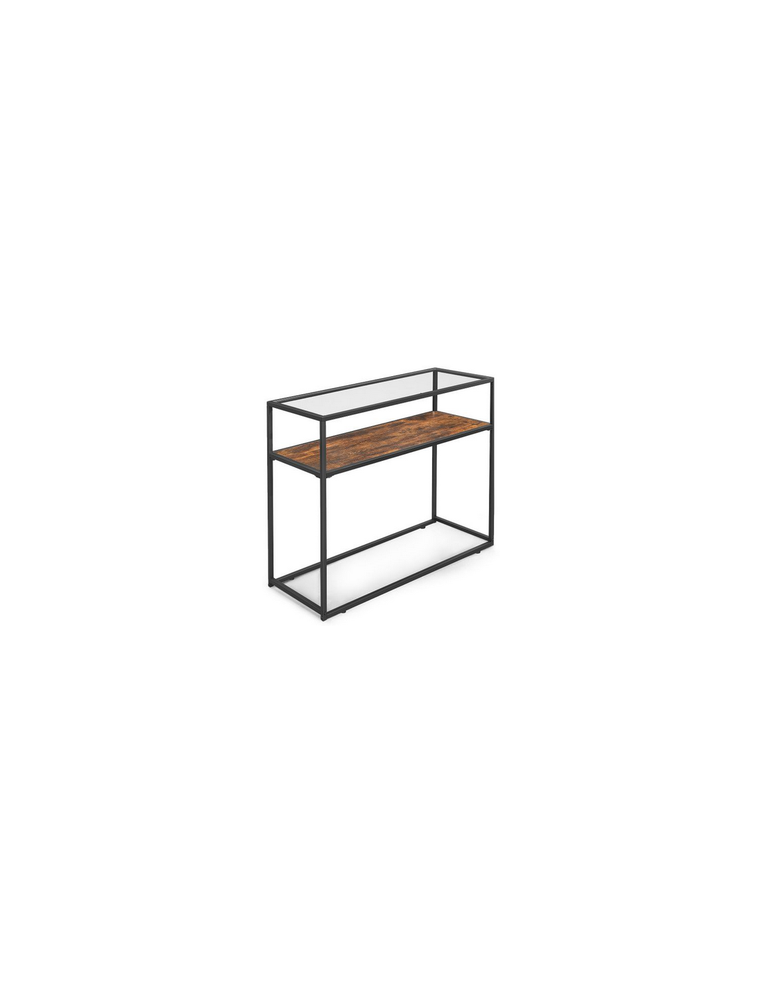 Konsolbord i metal, glas og møbelplade 100 x 40 cm - Sort/Brun