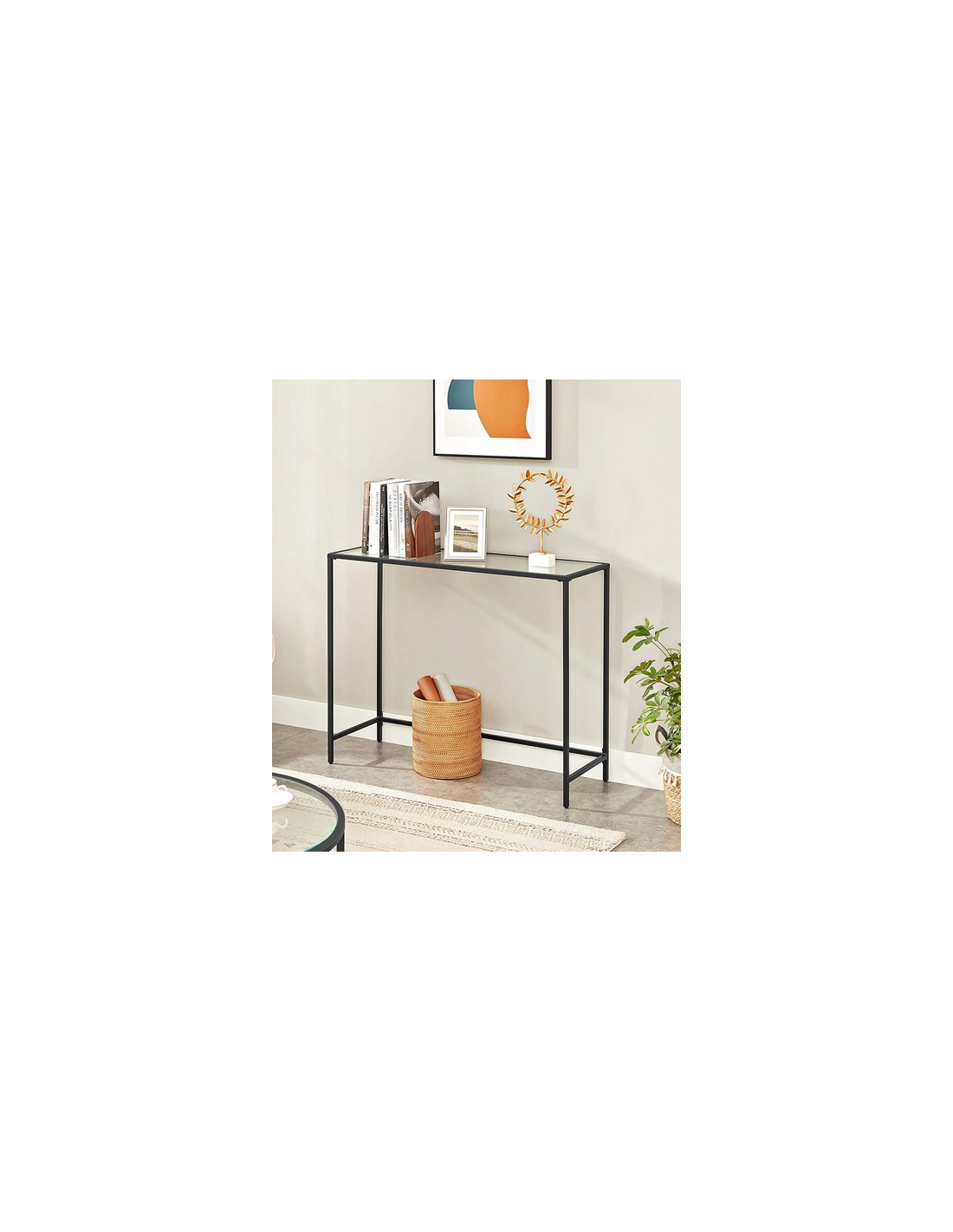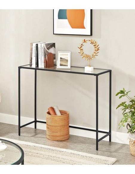 Konsolbord i metal og glas 100 x 35 cm - Sort/Klar
