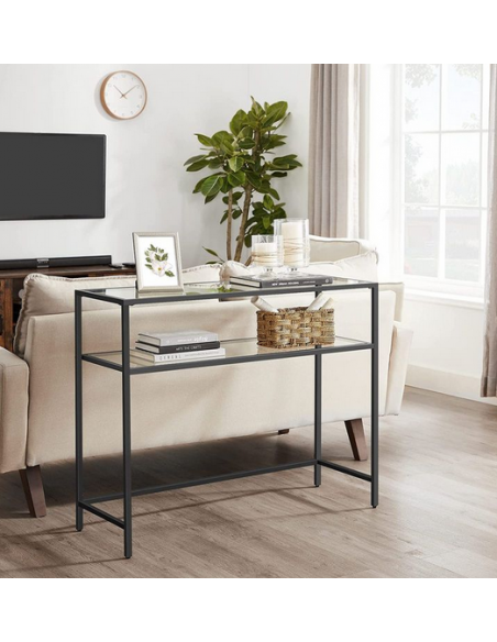 Konsolbord i metal og glas 100 x 35 cm - Sort/Klar