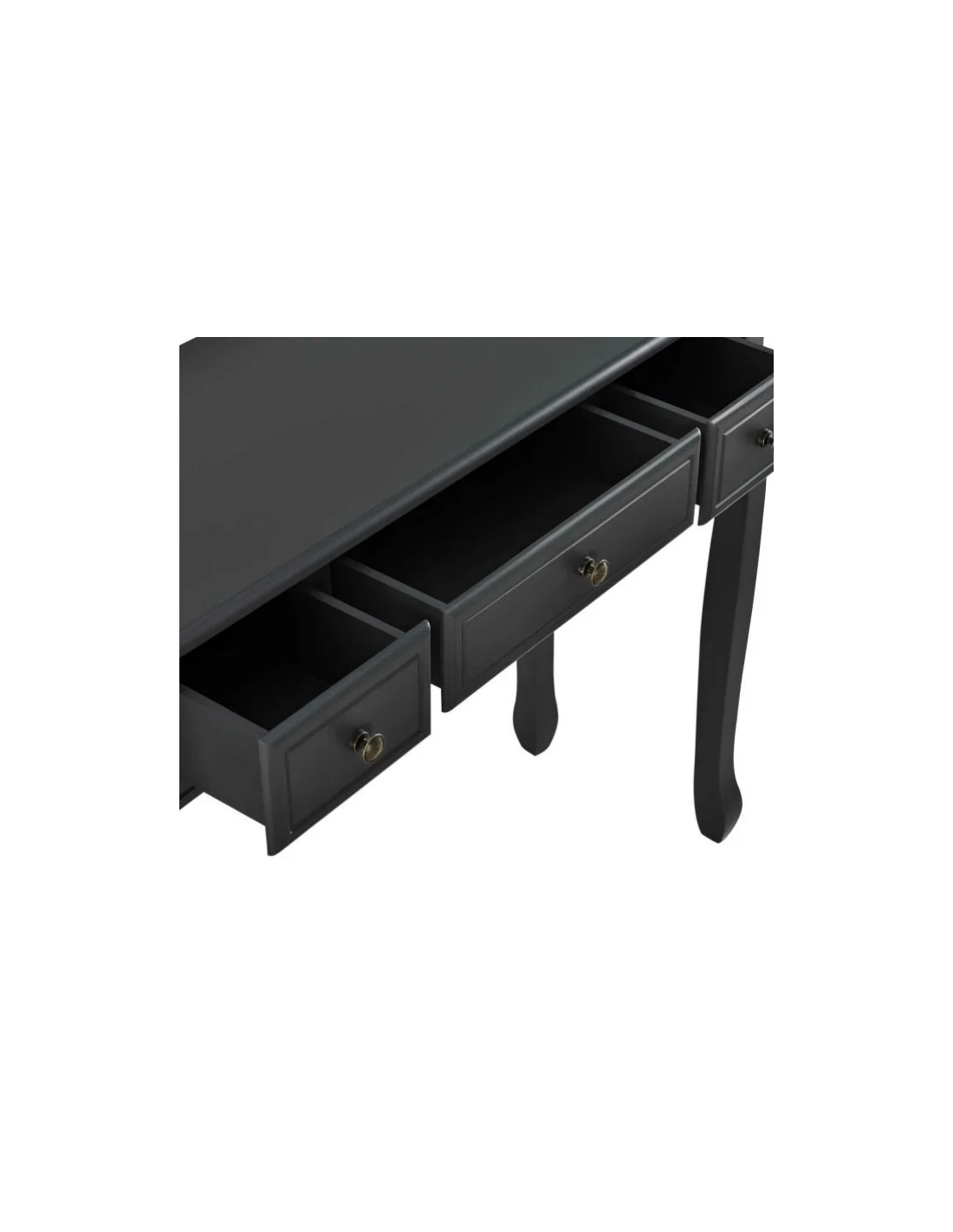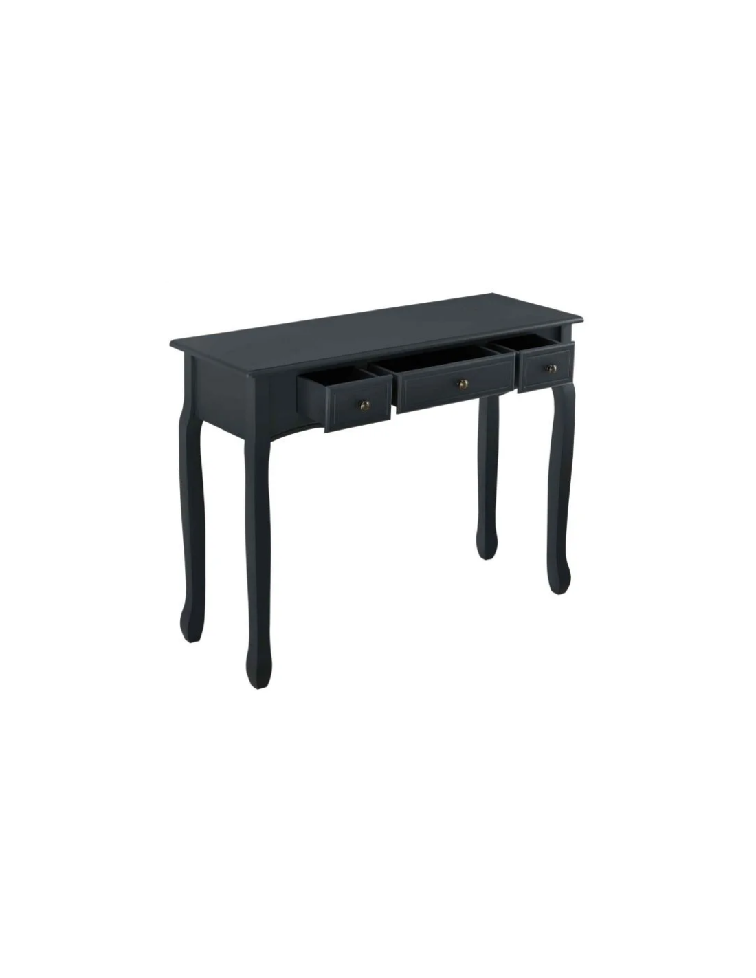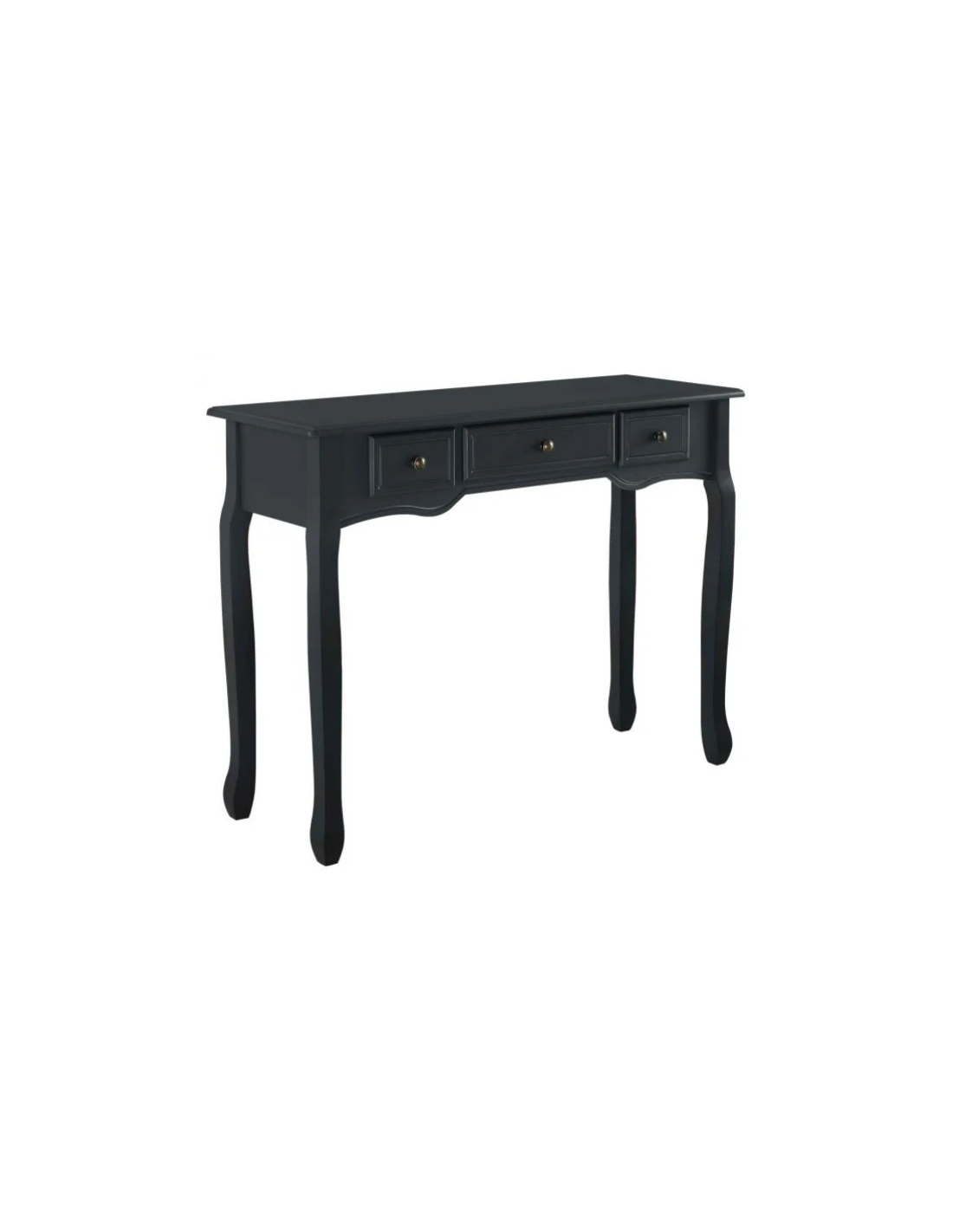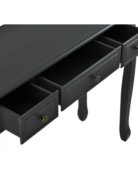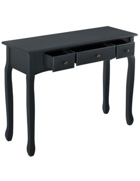 Konsolbord udført i et design af sortlakeret træ og mdf. Konsolbordet måler 78 cm i højden og 100 x 35 cm i bredde og dybde. Den store og midterste skuffe måler H10 x B35 x D25 cm og de 2 små sideskuffer måler H11 x B18 x D25 cm.