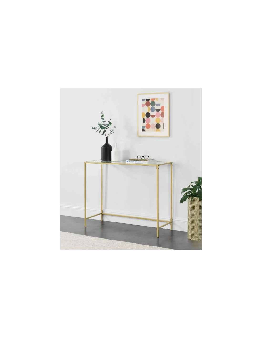 Konsolbord i metal og glas H80 x B100 x D35 cm - Guld