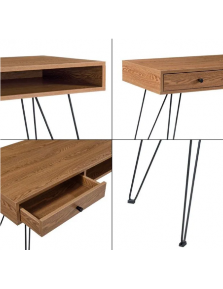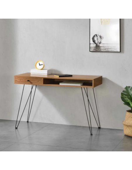 Konsolbord i metal og møbelplade H75 x B115 x D48 cm - Sort/Nød