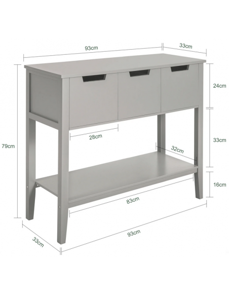 Konsolbord i mdf H79 x B93 x D33 cm - Grå