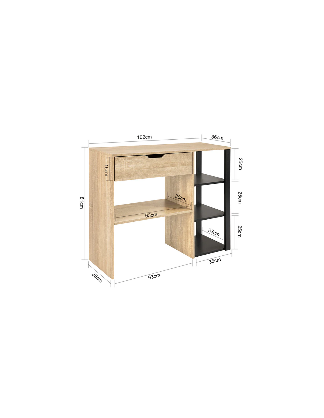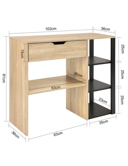 Konsolbord udført i et design af møbelplade. Konsolbordet måler 81 cm i højden og 102 x 36 cm i bredde og dybde.