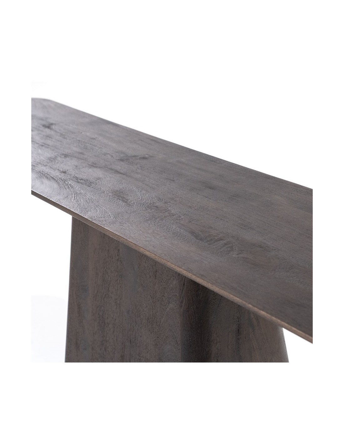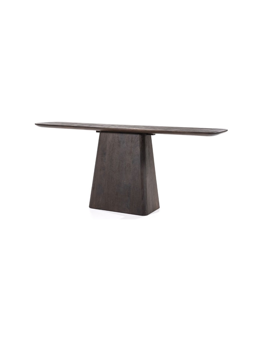 Aron konsolbord udført i et moderne design, fremstillet i brunbejset genanvendt mangotræ. Konsolbordet måler 75 cm i højden og 180 x 40 cm i bredde og dybde.