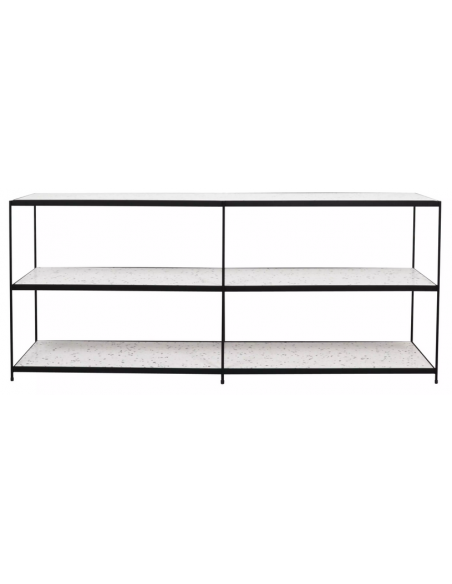 Luiza konsolbord i metal og terrazzo H65 x B150 x D40 cm - Mat sort/Hvid terrazzo