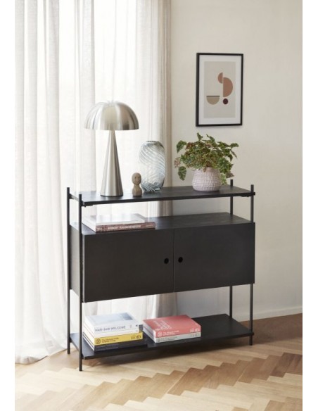 Hübsch Norm konsolbord udført i et design af asktræ og metal. Konsolbordet måler 90 cm i højden og 103 x 35 cm i bredde og dybde. Konsolbordet indeholder 2 skabe.