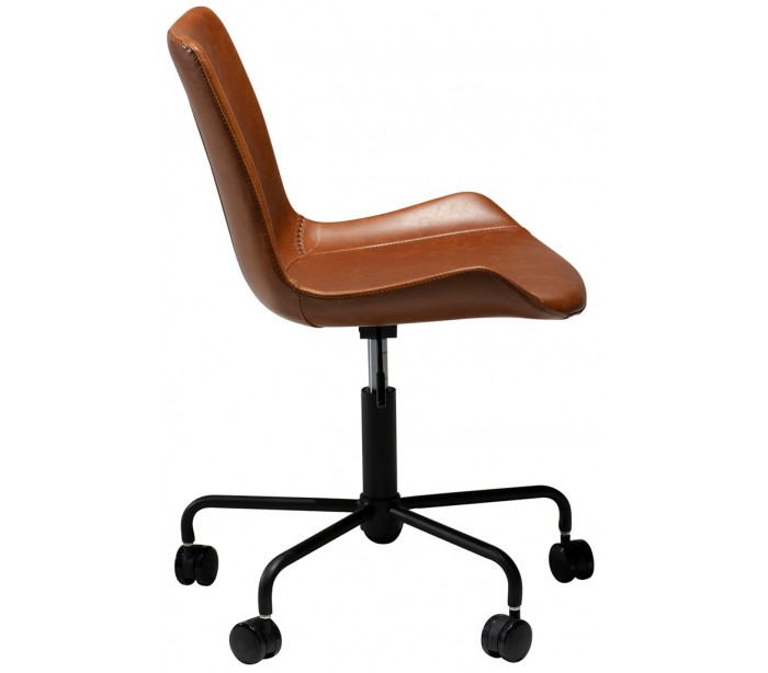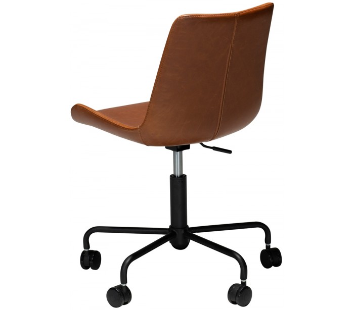 Kontorstol i et smukt design, fremstillet med sæde i vintage lysebrun kunstlæder og ben i sortlakeret metal. Kontorstolen måler 78 - 90 cm i højden over ryggen og 42 - 54 cm i siddehøjde.
