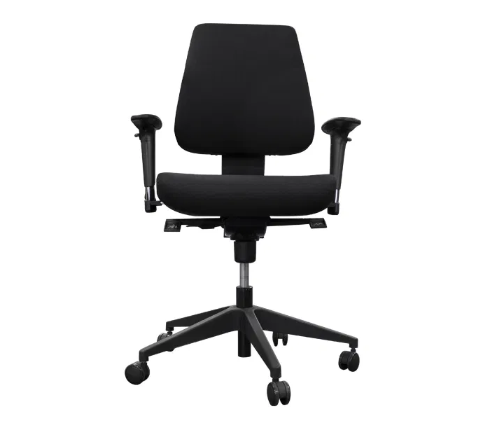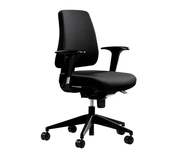 Kontorstol udført i et design af sort polyester. Stolen leveres med armlæn der kan justeres i højden og dermed sikrer ekstra god komfort. Stolen har en siddehøjde på 45 - 56 cm og synkron vippefunktion med vægtjustering, sædevip og sædedybderegulering samt justering af ryghøjden.