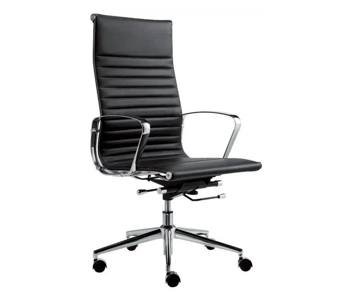 Wye kontorstol i læder og høj ryg - Krom/Sort