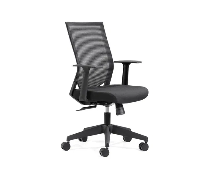 Kontorstol udført i et design af sort polyester og sort kunststof. Stolen er med armlæn der sikrer bedre komfort og har en siddehøjde på 43 - 55 cm og med synkron vippefunktion med 3 låsbare positioner.