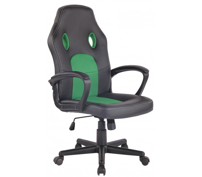 Racing Gaming kontorstol i et komfortabelt design, fremstillet med sæde i polstret grøn og sort kunstlæder. Kontorstolen er med hejsefunktion og stolens siddehøjde er 43 - 53 cm.