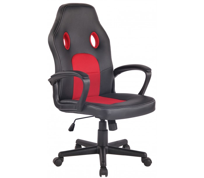 Racing Gaming kontorstol i et komfortabelt design, fremstillet med sæde i polstret rødt og sort kunstlæder. Kontorstolen er med hejsefunktion og stolens siddehøjde er 43 - 53 cm.