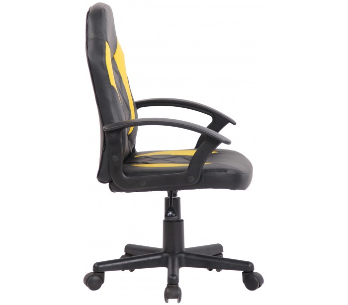 Kontorstol i et komfortabelt design, fremstillet med sæde i polstret gul og sort kunstlæder. Kontorstolen er med hejsefunktion og stolens siddehøjde er 42 - 54 cm.