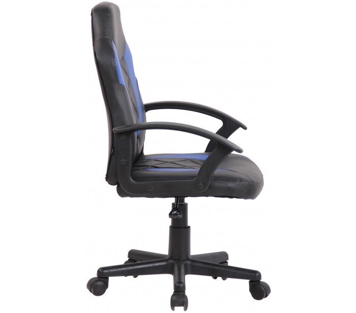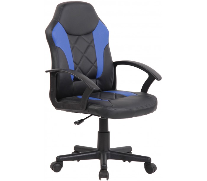 Kontorstol i et komfortabelt design, fremstillet med sæde i polstret blå og sort kunstlæder. Kontorstolen er med hejsefunktion og stolens siddehøjde er 42 - 54 cm.