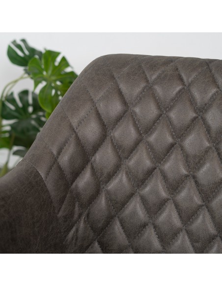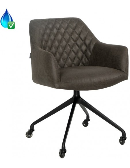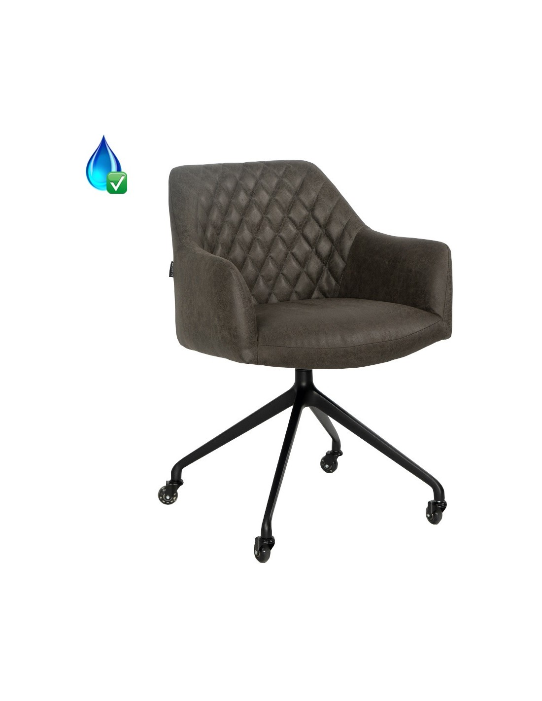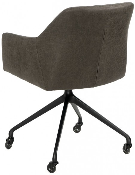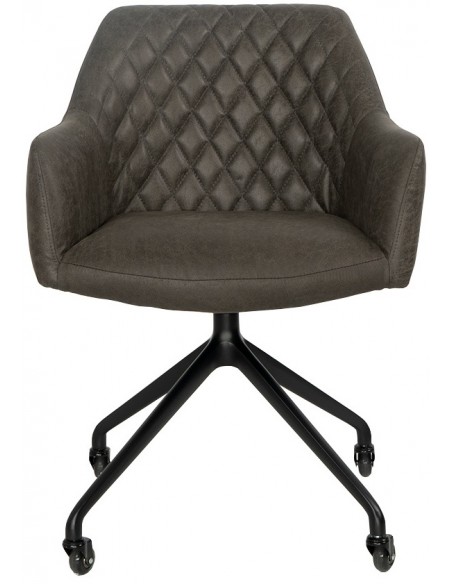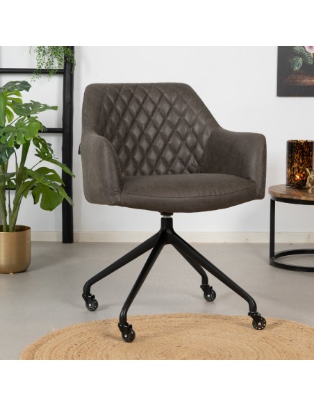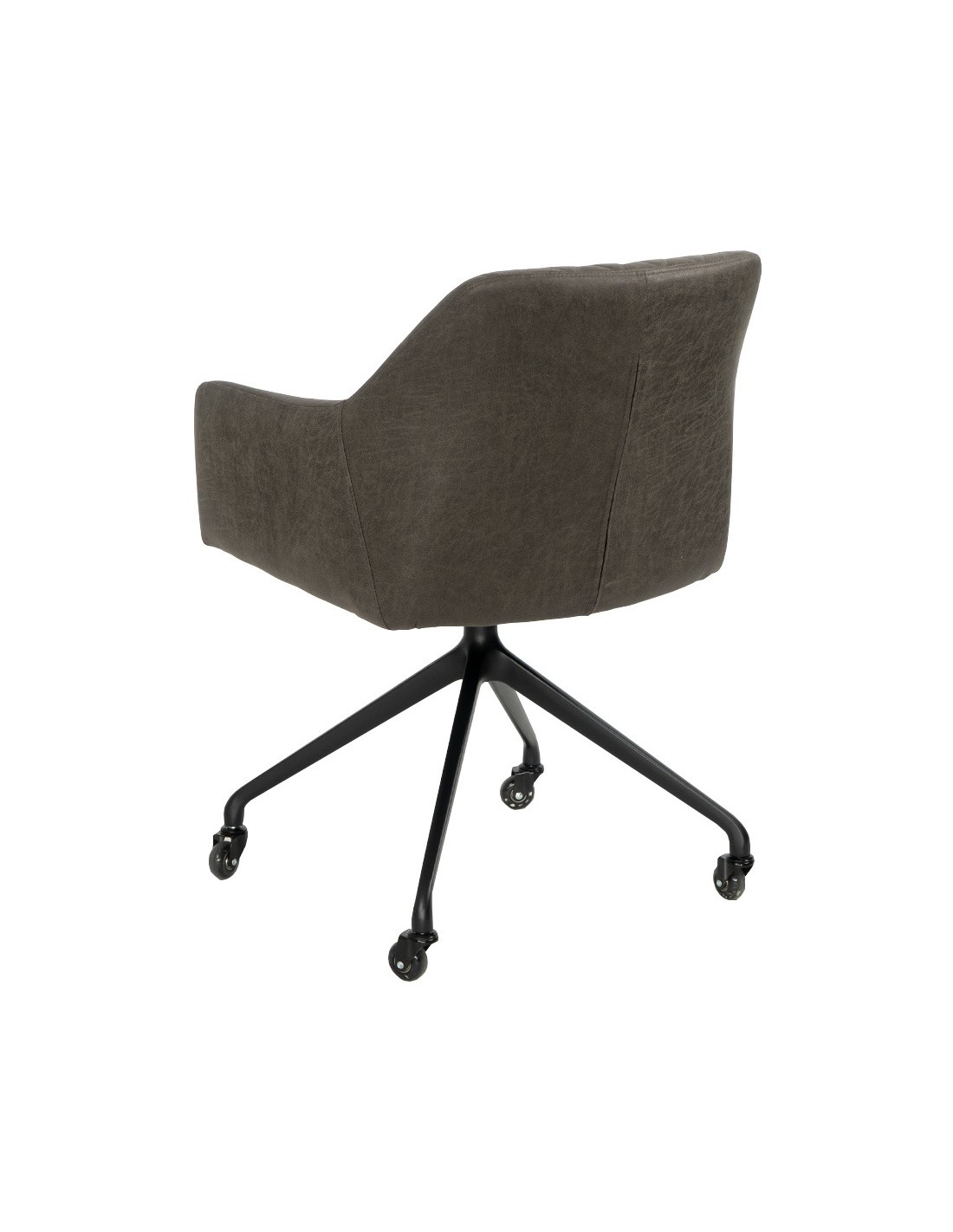 Levi kontorstol i et moderne design, fremstillet med sæde i vintage antracit øko-læder (70% Læder/30% Polyester) og stel i sortlakeret metal. Stolen måler 81 cm i højden over ryggen og med siddehøjde på 52 cm. Betrækket er med martindale 45.000 og er vandafvisende. Stolen er ikke med hejsefunktion.