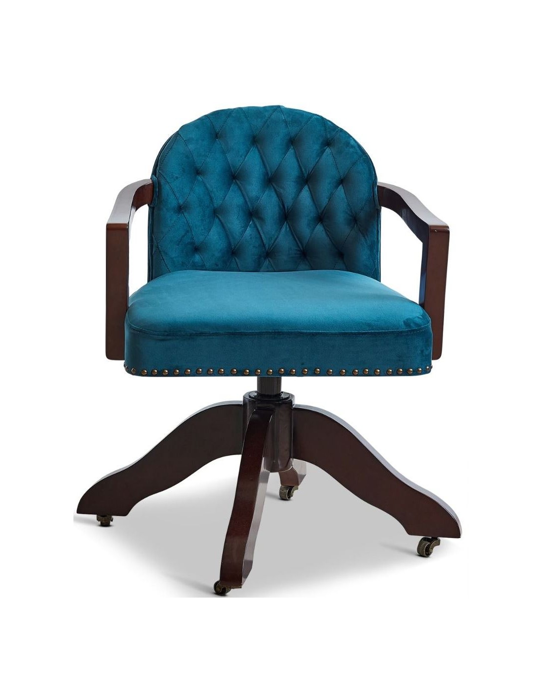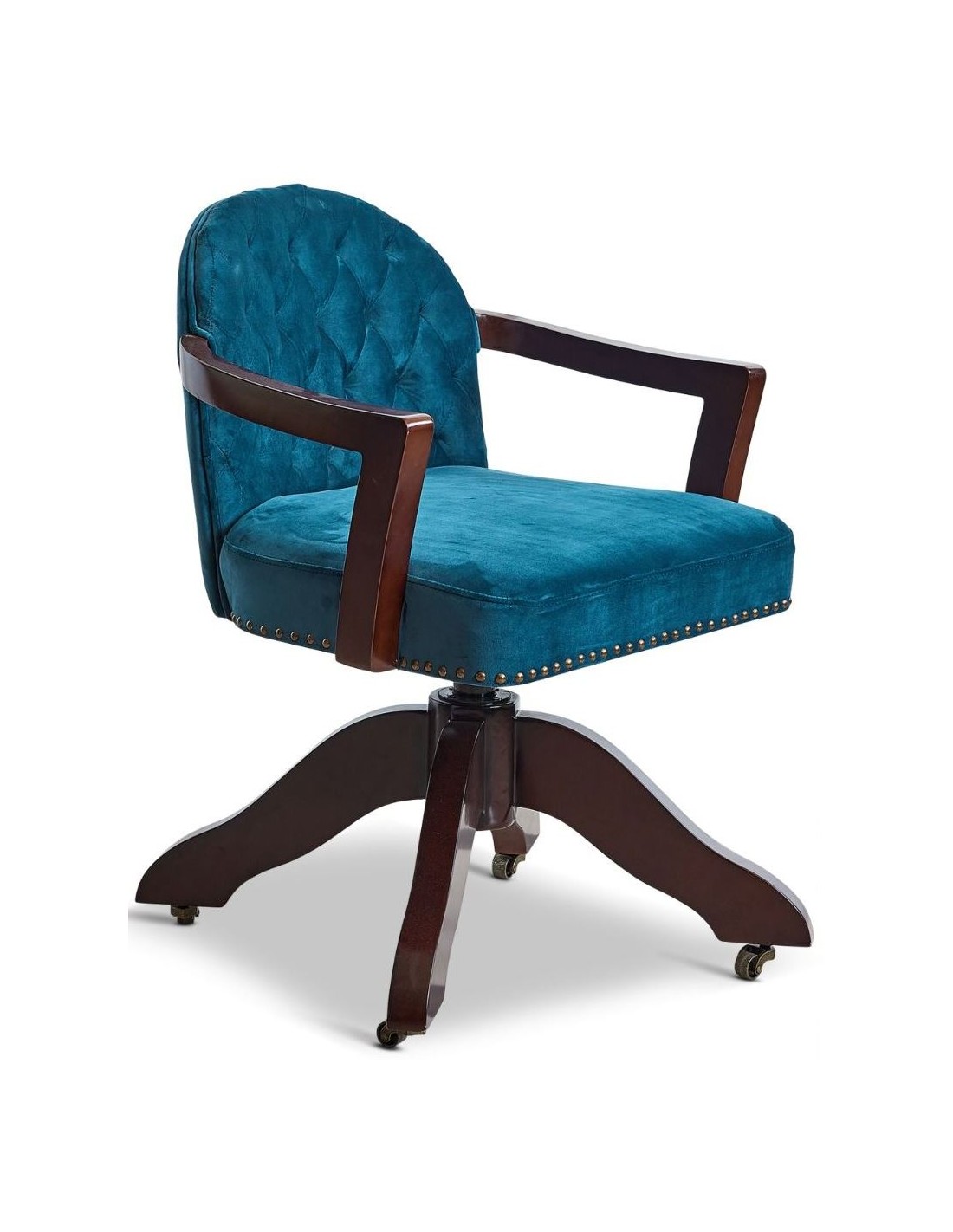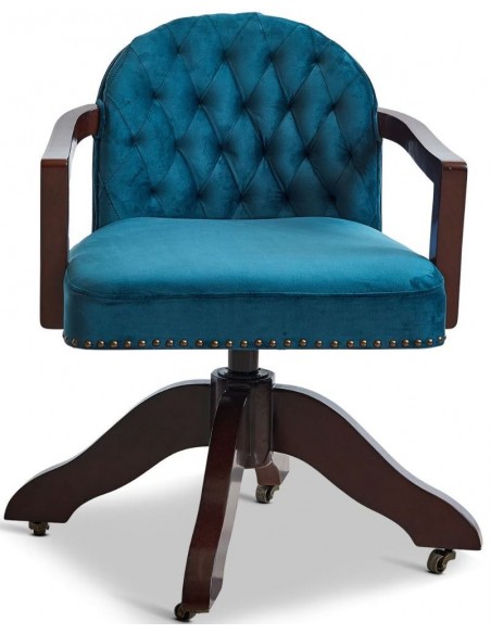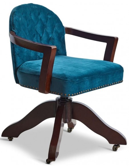 Kontorstol fra Authentic Models. Kontorstolen er udført i et design i vintage mørkebrun lakeret mahognitræ og grøn velour. Stolen måler 82 cm i højden og 50 x 55 cm i bredde og dybde.