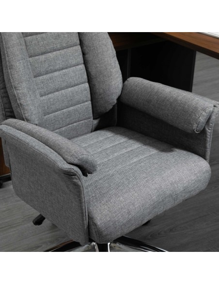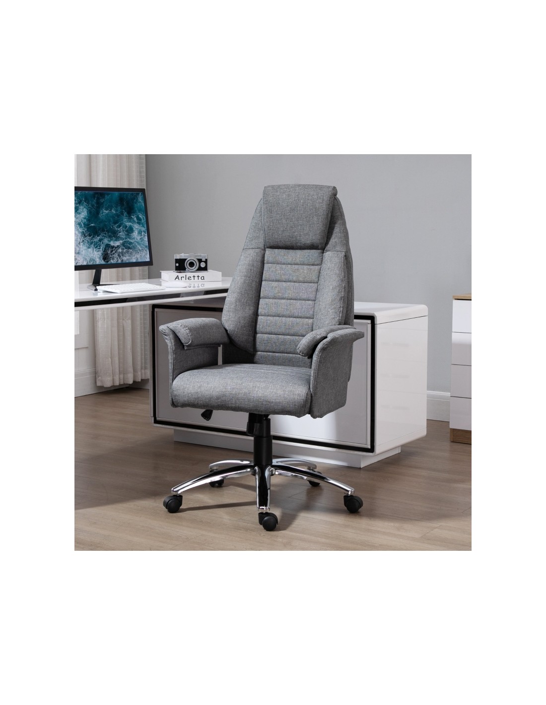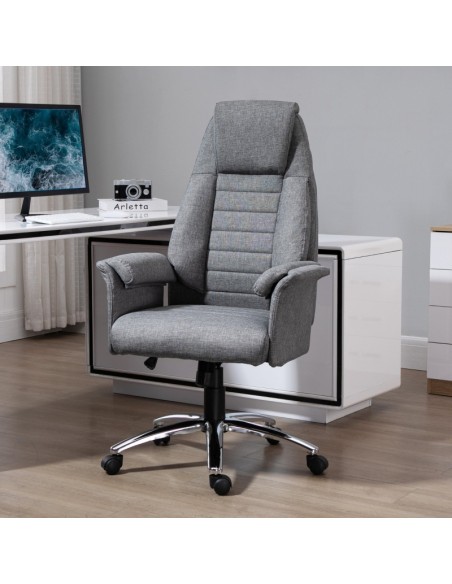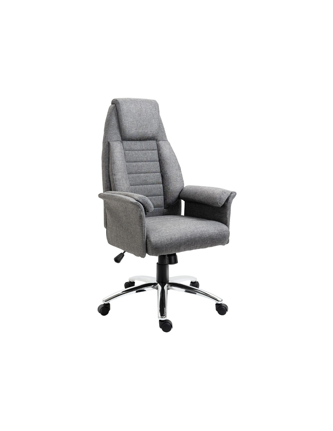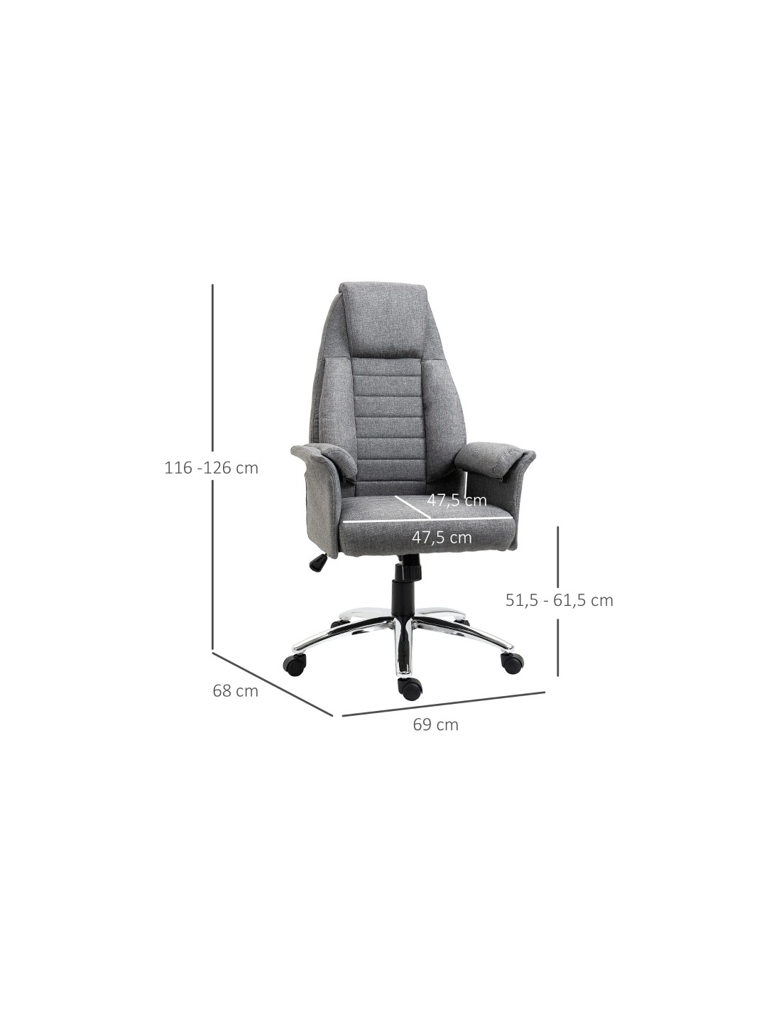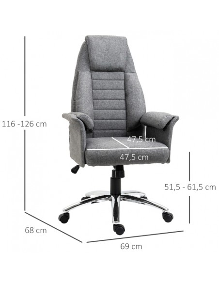 Kontorstol i et design af kromlakeret metal og grå polstret polyester. Kontorstolen måler 116 - 126 cm i højden over ryggen og med en siddehøjde på 52 - 62 cm. Stolens bredde er 69 cm og dybde 68 cm.