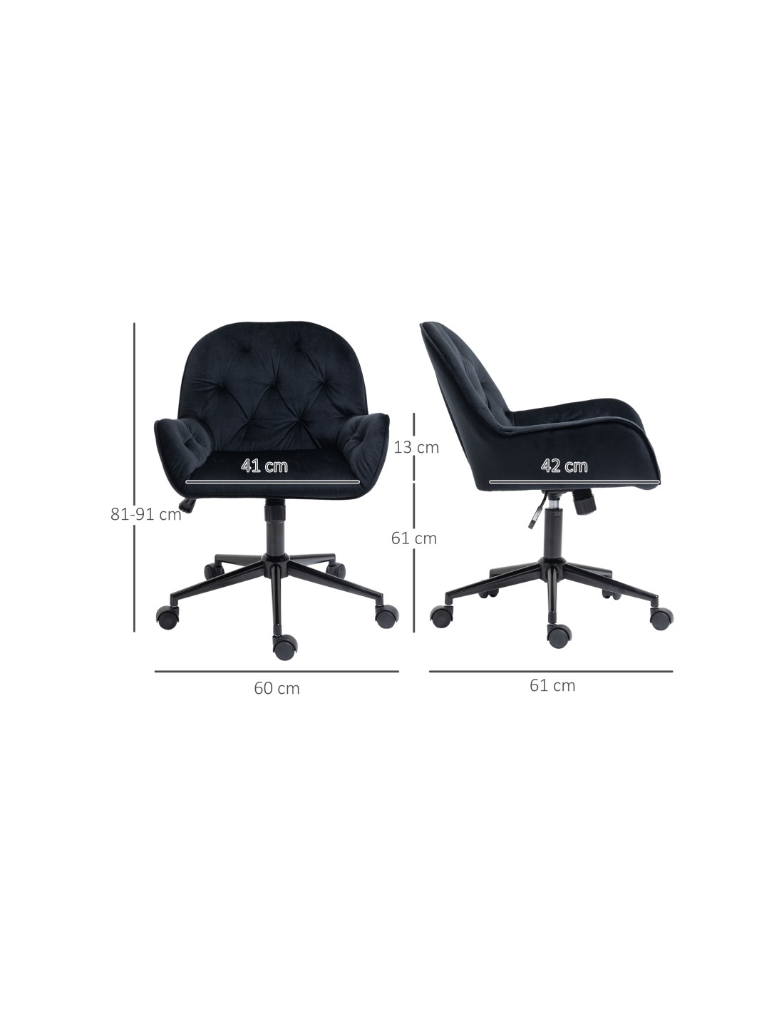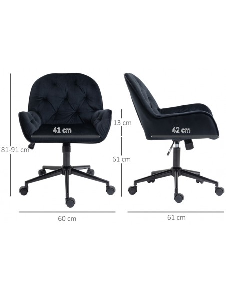 Kontorstol i et design af sortlakeret metal og sort polstret velour. Kontorstolen måler 81 - 91 cm i højden over ryggen og med en siddehøjde på 46 - 56 cm. Stolens bredde er 60 cm og dybde 61 cm.