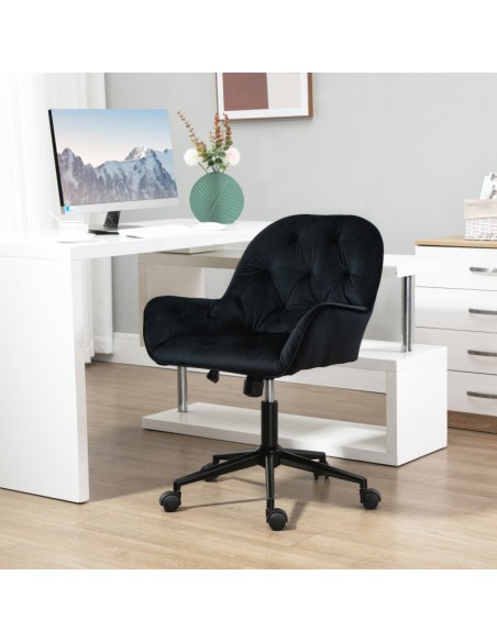 Kontorstol i velour H81 - 91 cm - Sort/Sort