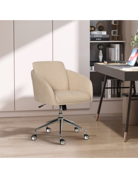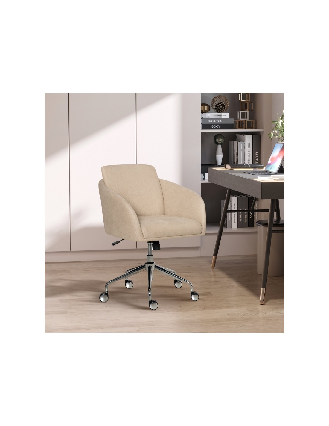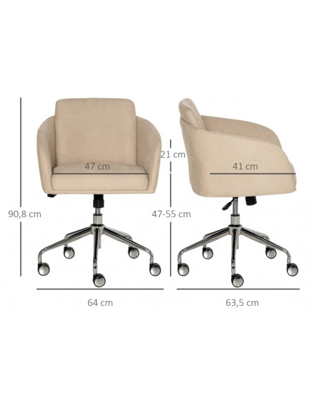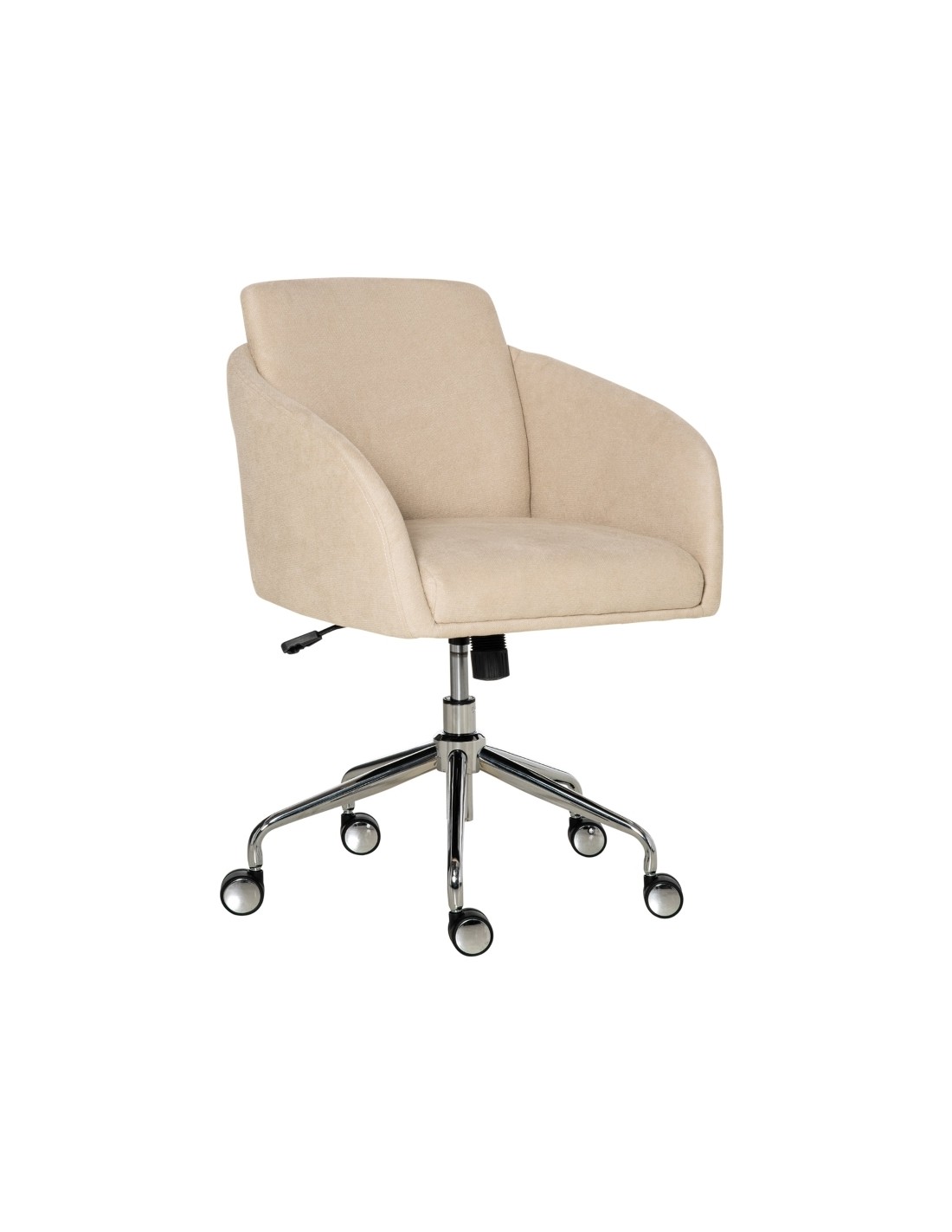 Kontorstol i et design af kromlakeret metal og beige polyester. Kontorstolen måler 90,8 - 98,8 cm i højden over ryggen og med en siddehøjde på 47 - 55 cm. Stolens bredde er 64 cm og dybde 63,5 cm.