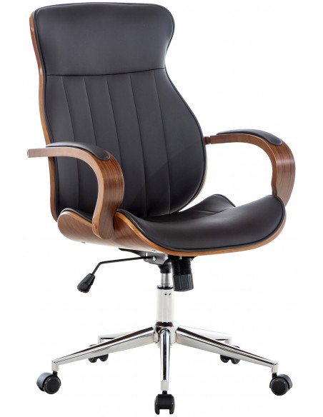 Kontorstol i formtræ og kunstlæder H100 - 108 cm - Valnød/Brun
