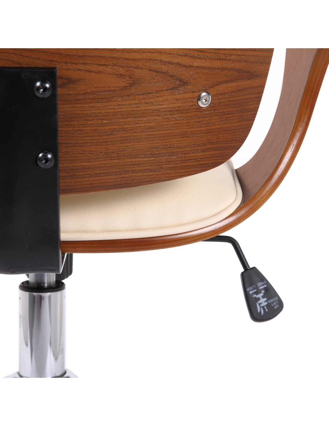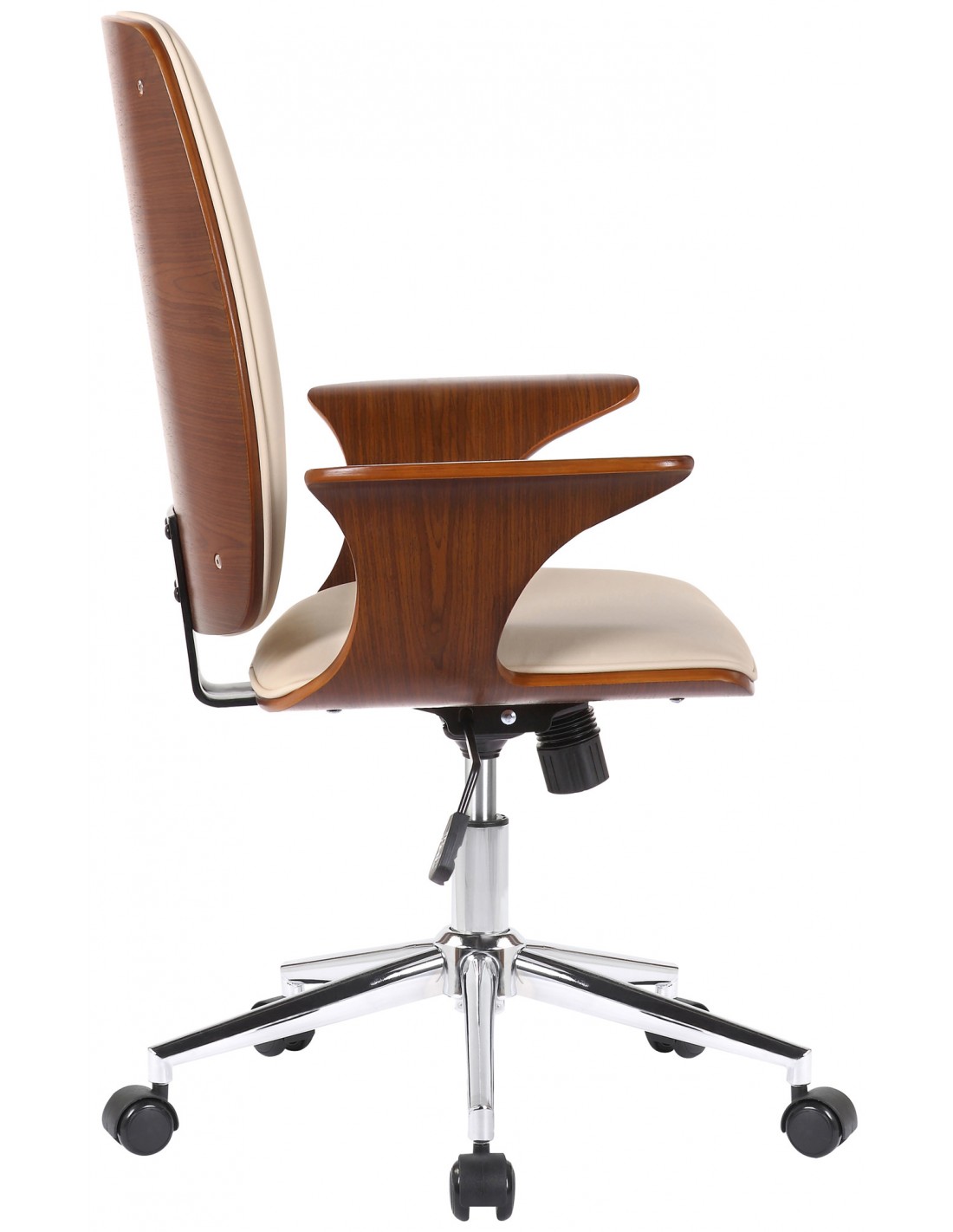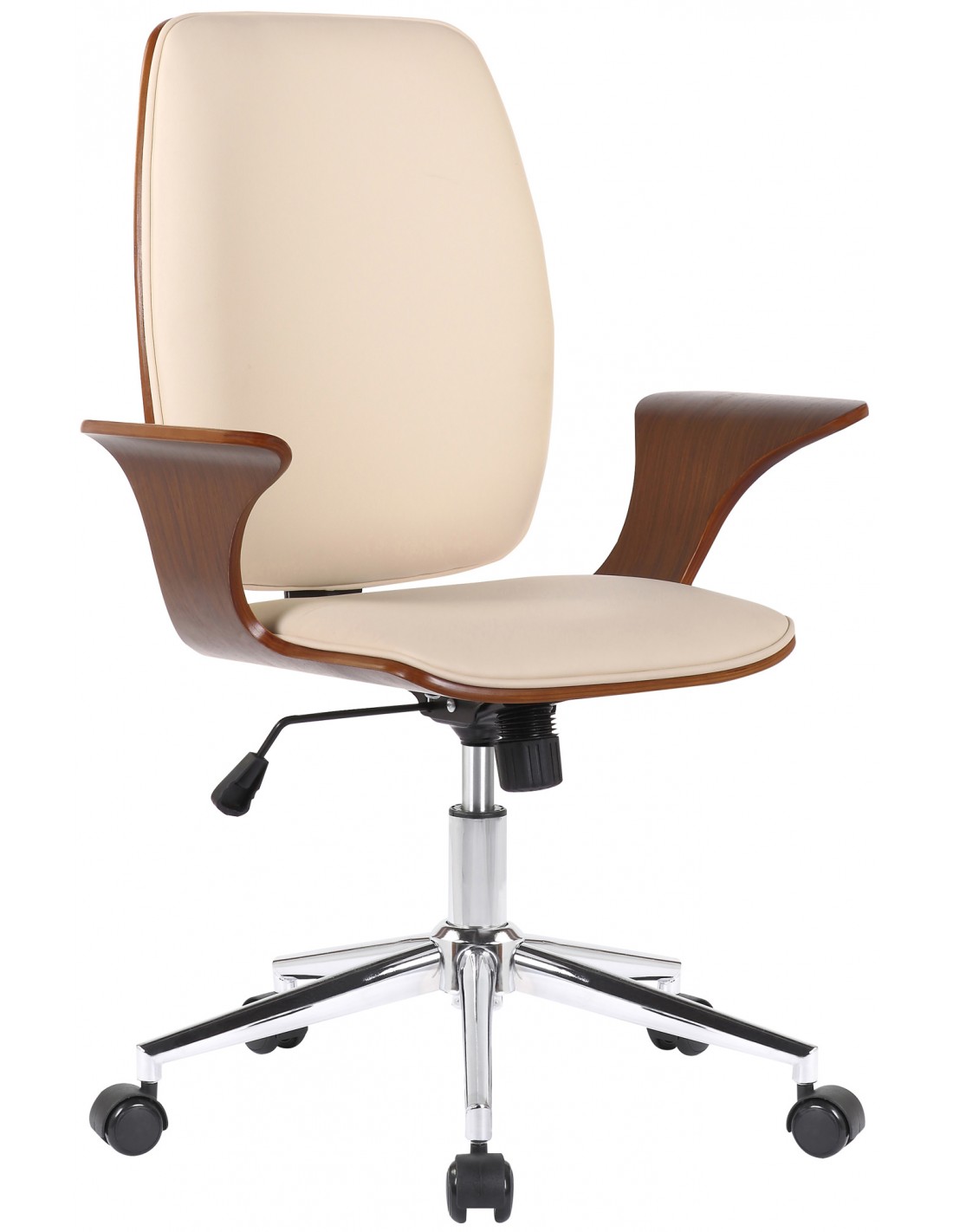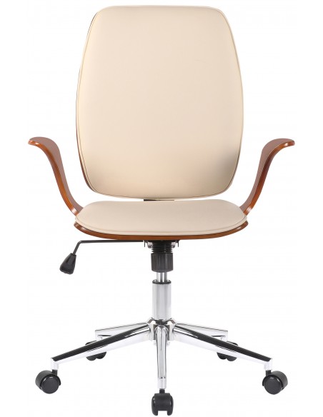 Kontorstol i formtræ og kunstlæder H93 - 101 cm - Valnød/Creme
