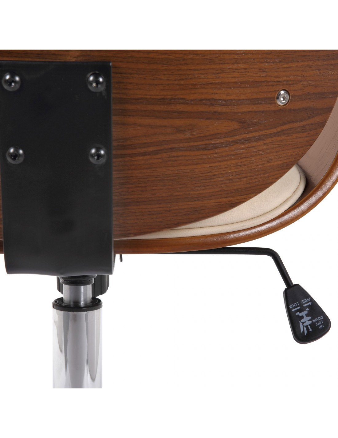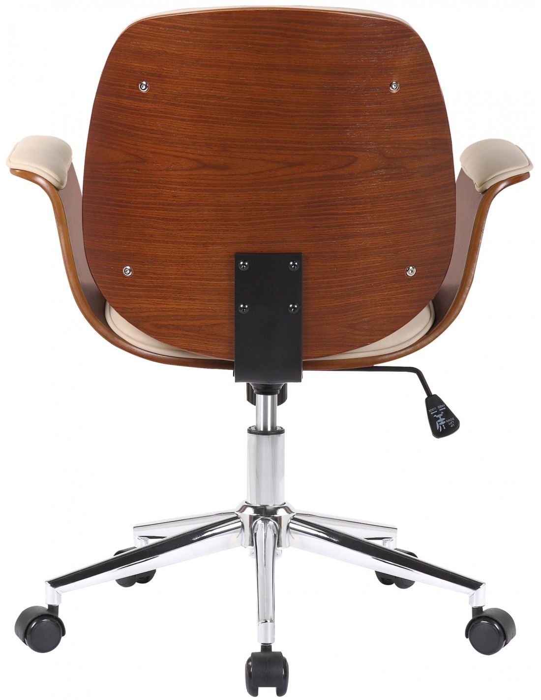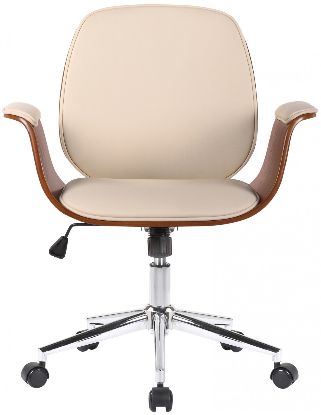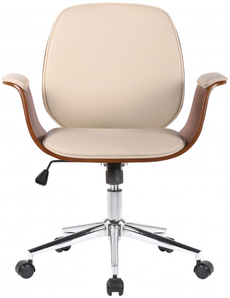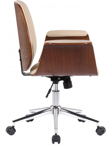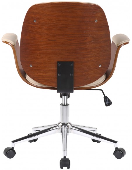 Kontorstol i formtræ og kunstlæder H82 - 90 cm - Valnød/Creme
