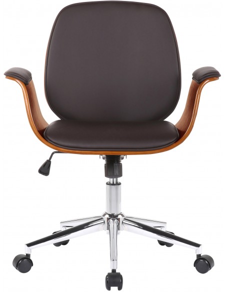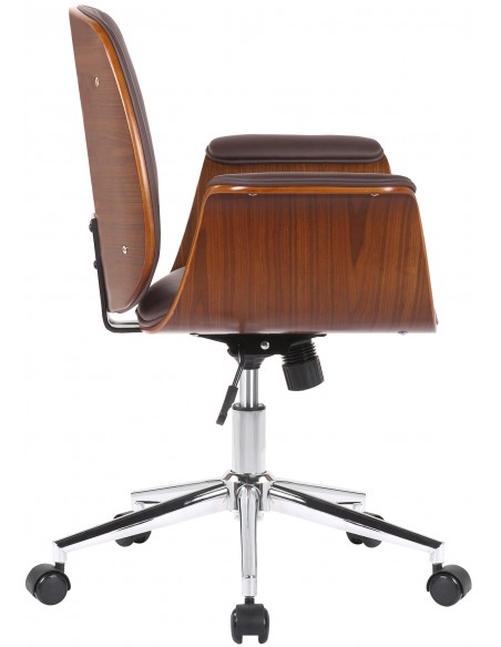 Kontorstol i formtræ og kunstlæder H82 - 90 cm - Valnød/Brun